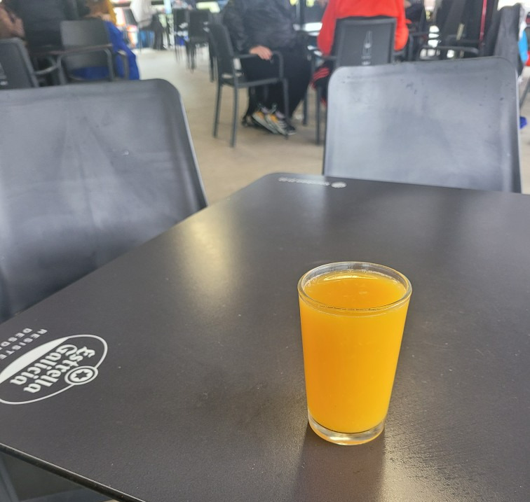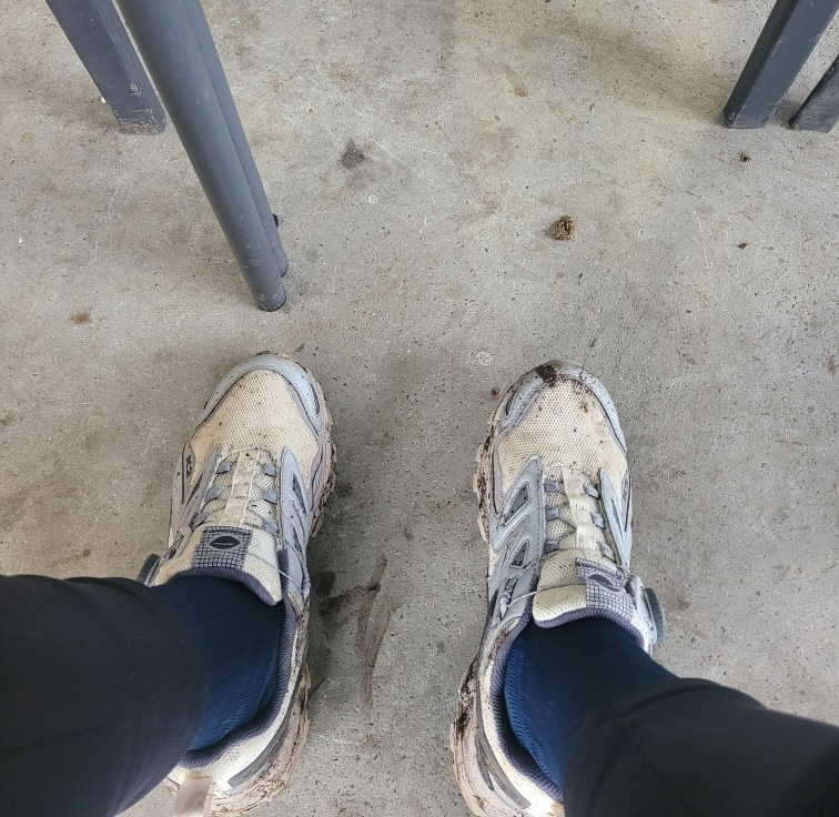 오렌지 착즙 주스와 흙탕물에 만신창이가 된 내 트레킹화 흙탕물을 걸어온터라