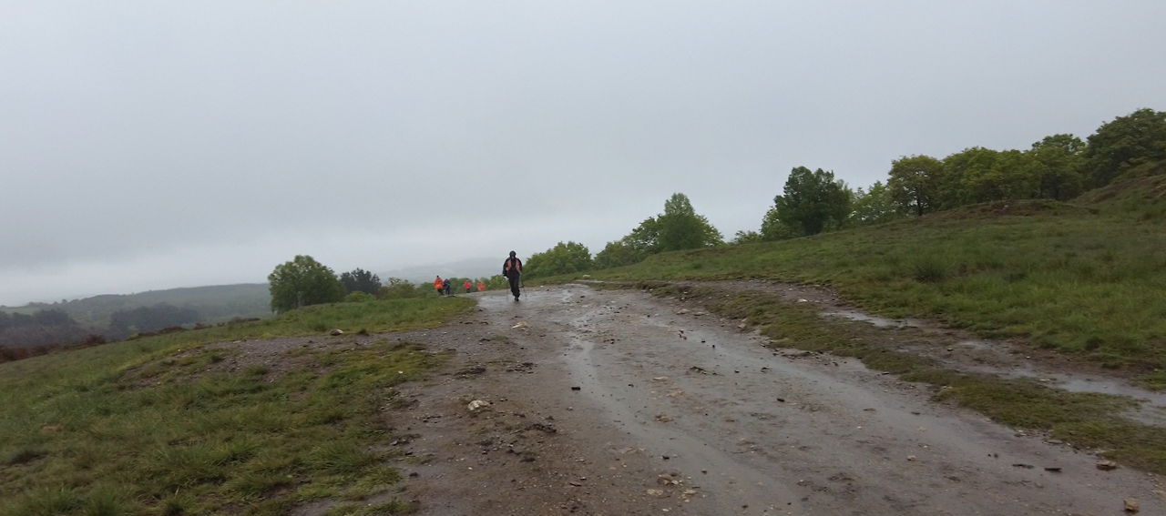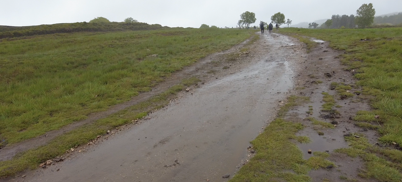 다시 배낭을 짊어지고 판초를 고쳐 입고