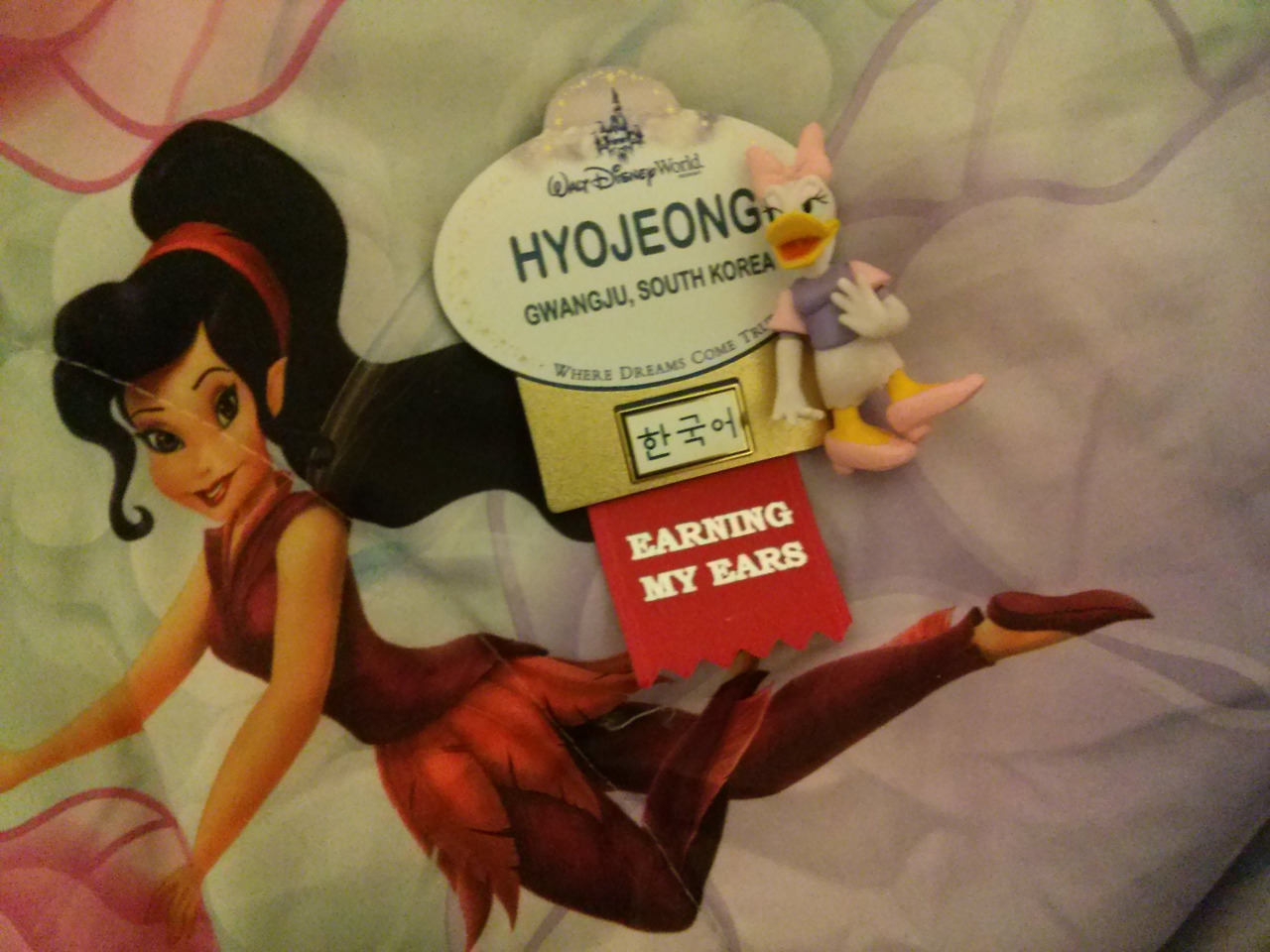 인턴십 기간 동안 사용하게 될 이름표를 받았다. 나의 이름과 출신지가 적혀있고 '한국어'로 서비스 제공이 가능함을 알려주는 표시도 있으며 수습기간임을 뜻하는 'EARNING MY EARS' 딱지가 붙어있다. 영어는 기본적으로 할 줄 알아야 하는 언어이기 때문에 이름표에 표시되지 않는다. 일하는 동안 언어 표시가 4개인 사람도 봤고, 수화가 가능한 사람도 여럿 봤다. 이름표를 받으니 이제 정말 디즈니의 일원이 된 기분이었다.