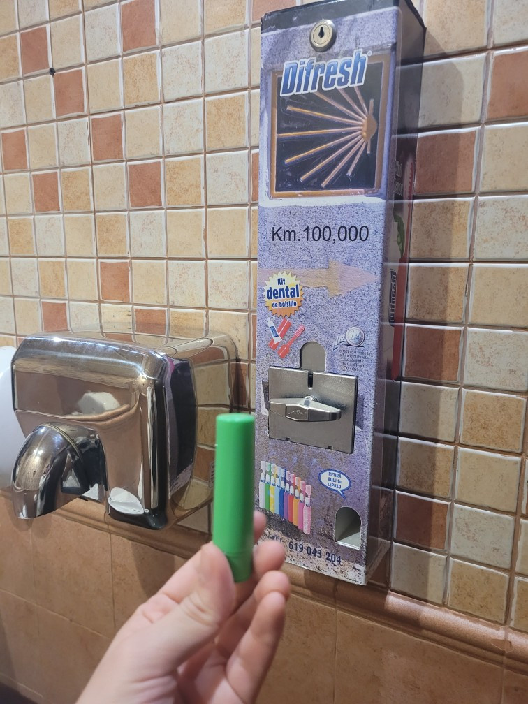 뽈뽀 식당 화장실에 있는 칫솔,치약 자판기