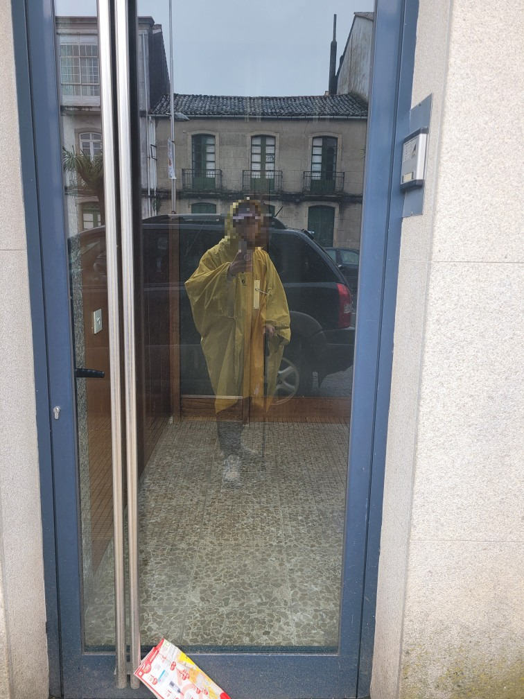 버스정류장을 찾다가 어느 건물 문에 비친 나를 찰칵