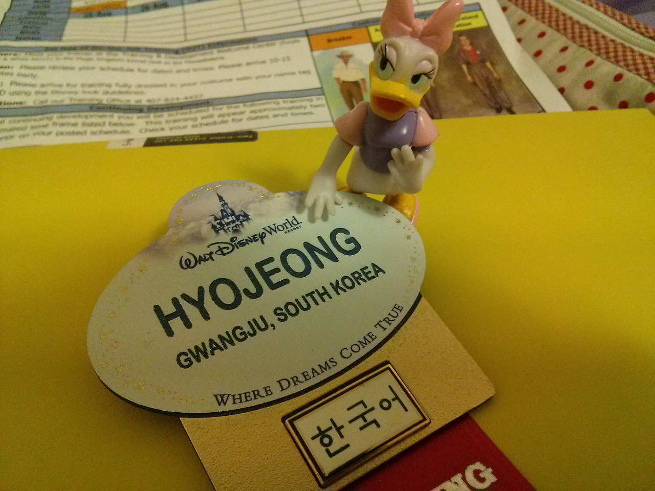디즈니월드에서 일을 할 때 꼭 필요한 것 중 하나는 바로 이름표이다. 파크에서 이름표 없이는 일을 할 수 없다.(디즈니에서 중요하게 여기는 4 keys 중 show에 해당한다.) 만약에 내가 이름표를 깜빡하고 가지고 오지 않은 날은 백스테이지에 예비용으로 있는 이름표들 중 하나를 착용하고 일을 해야 한다. 그래서 그날은 내 이름이 아닌 Jane이나 Susan 같은 다른 이름의 이름표를 착용하고 일을 하게 되는 것이다.