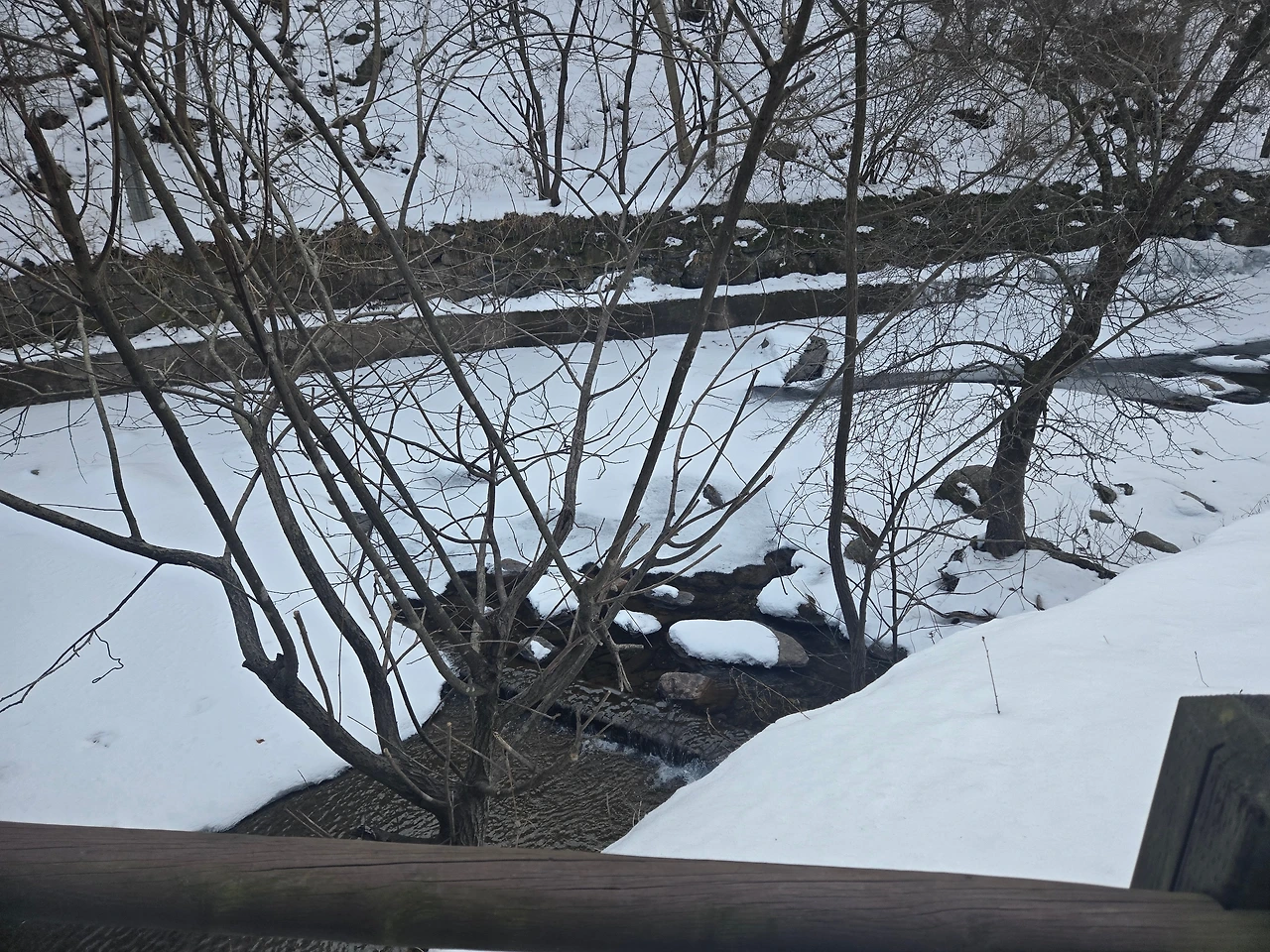 차타고 오는길에는 눈이 쌓인 곳이 없었는데
