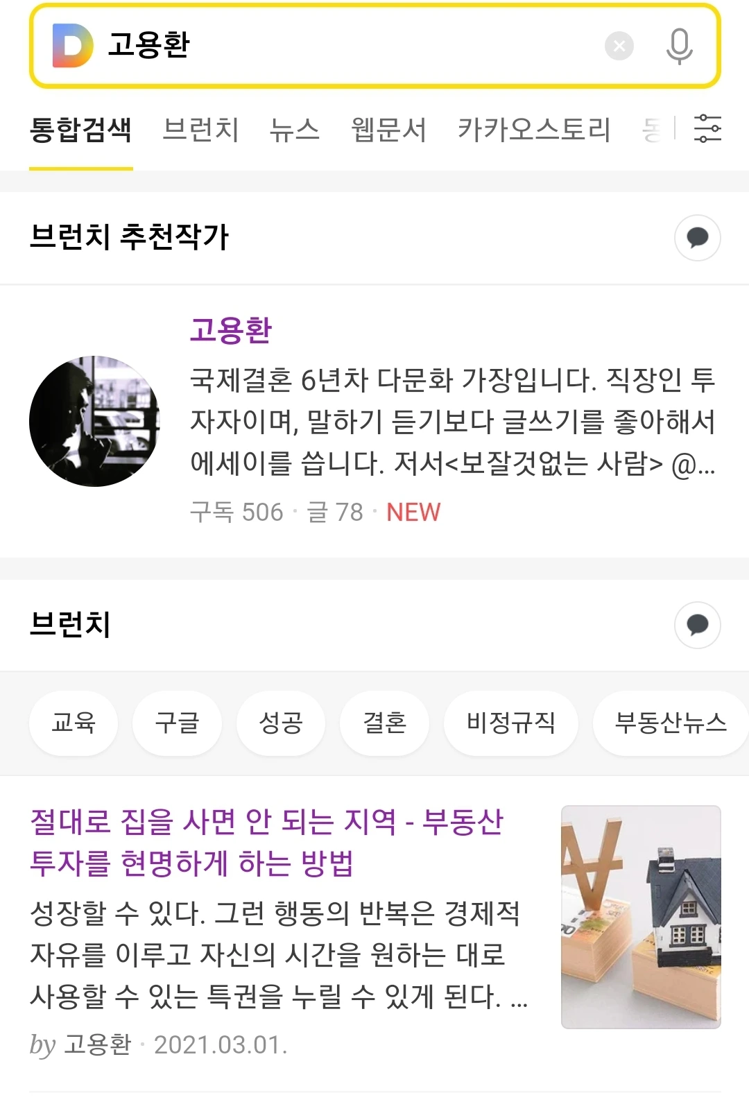 고용환의 브런치 인기글 목록