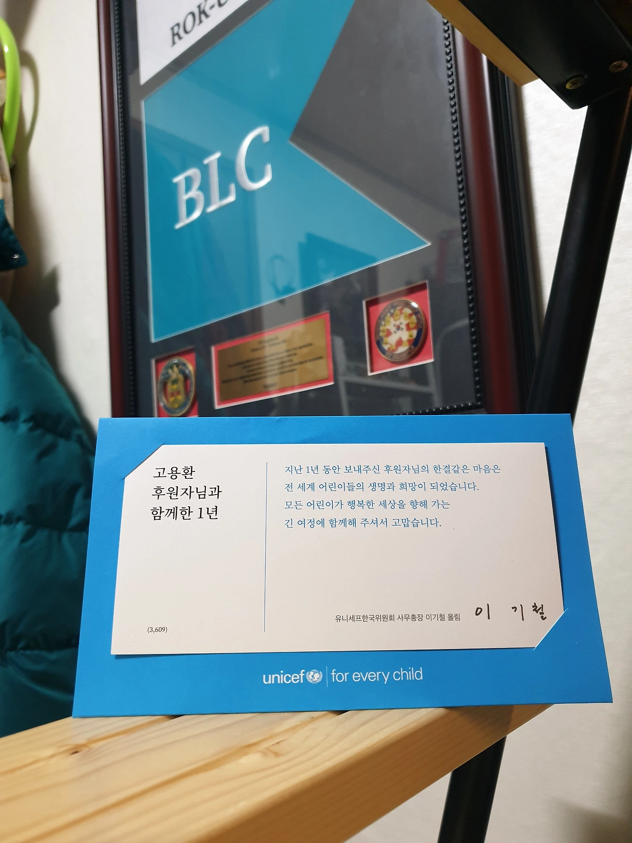 그리고 이런 기부는 작지만 딸에게도 영향력을 주었다. 딸은 파란색 배경에 아동들의 활동 모습이 있는 우편물에 관심을 보였다. 나는 딸에게 사람을 도와주는 것에는 크기는 중요하지 않고 마음과 행동으로 옮기는 용기가 중요하다고 말해주면서 나중에 아빠랑 같이 더 좋은 세상을 위해서 노력하자고 말해주었다. 물론 의미를 알아듣지는 못했지만 정기적으로 오는 후원자 보고서 그림을 보면서 조금씩 무슨 의미인지 이해하는 것만 같았다.