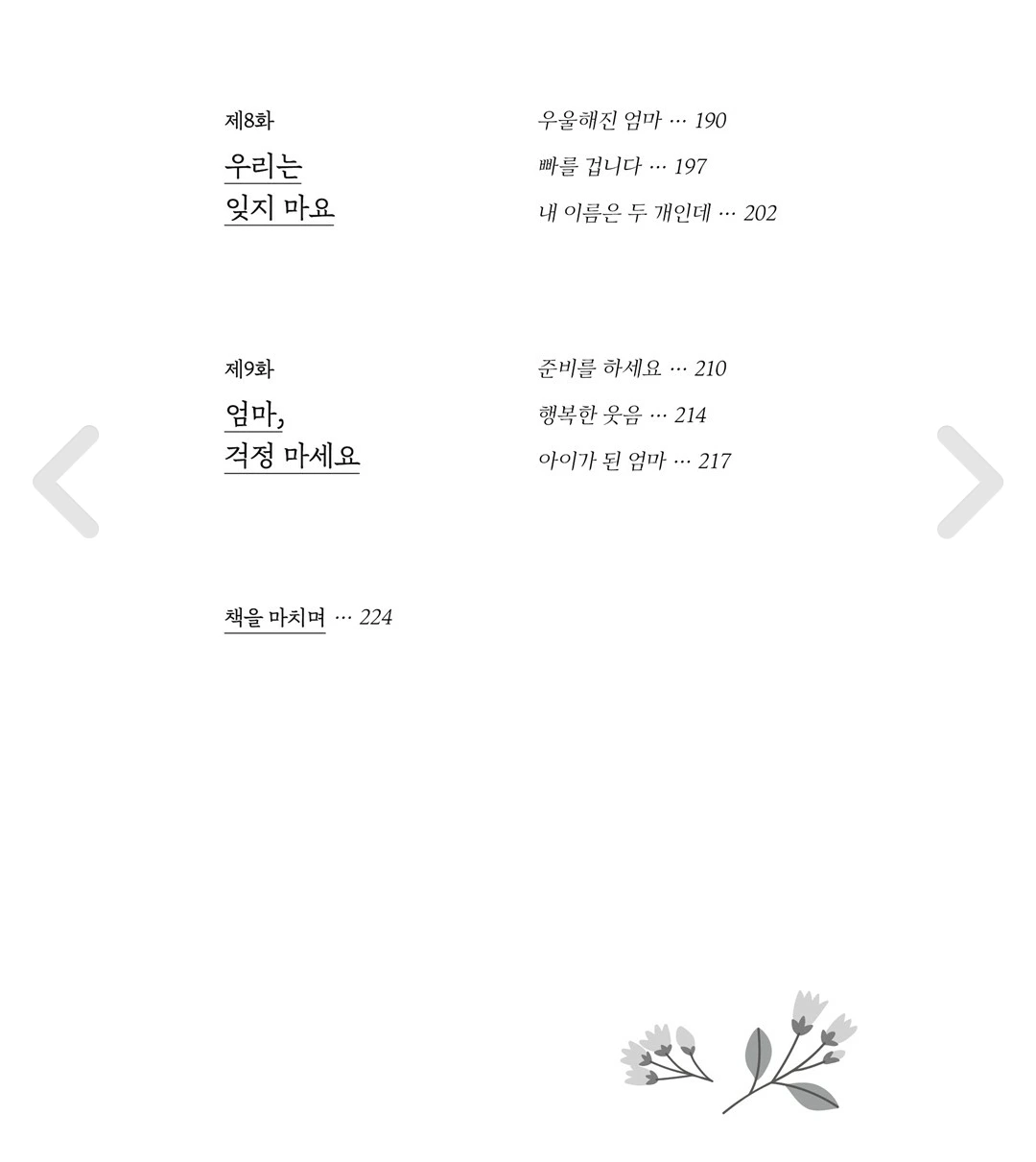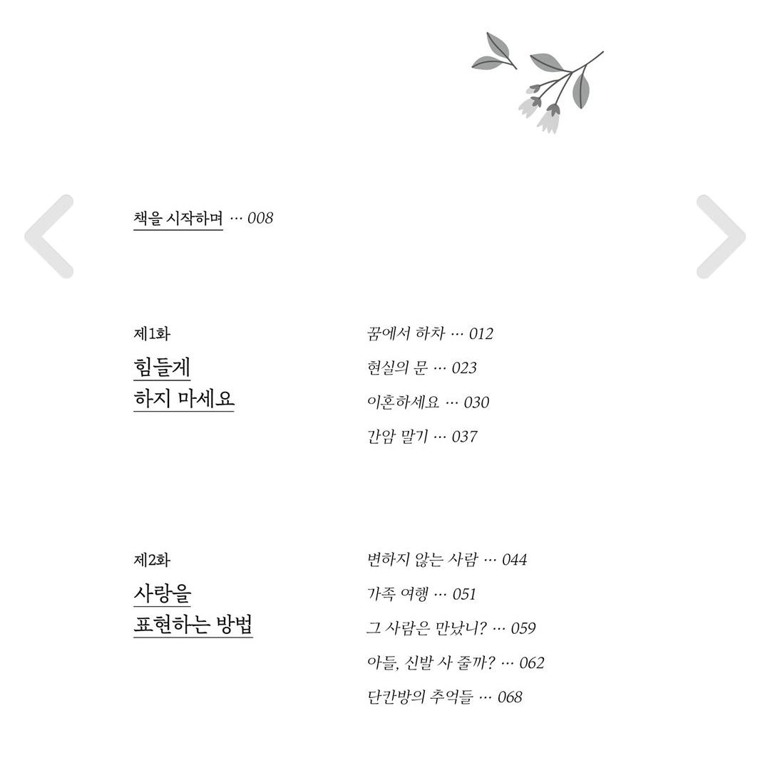 어쩌면 다소 아쉽고 당항스럽게 느껴질 수 있는 마지막 페이지는 저자 본인도 감당할 수 없는 슬픔과 두려움 담고 있기도 하다. 그리고 어쩌면 불가능 하지만 어머니의 건강이 회복되기를 바라는 간절함을 그리고 있다.