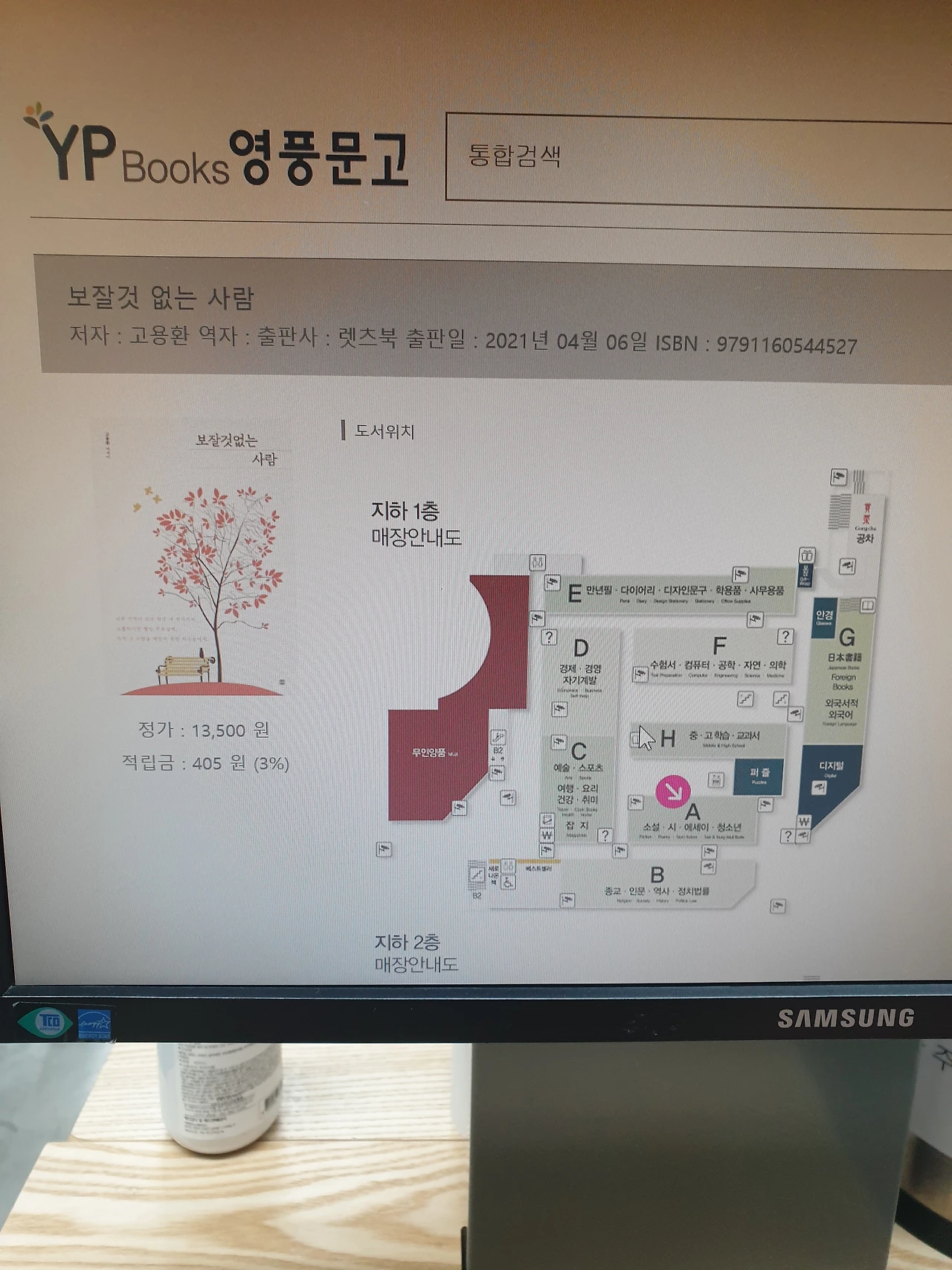 서점에 도착하자마자 바로 에세이 신간이 진열되어 있는 코너로 향했다. 도착해서 한 바퀴를 돌면서 책을 찾아봤는데 눈에 띄지 않았다. 의심스러운 마음에 위치를 검색했더니 방금 갔던 곳으로 나왔다.