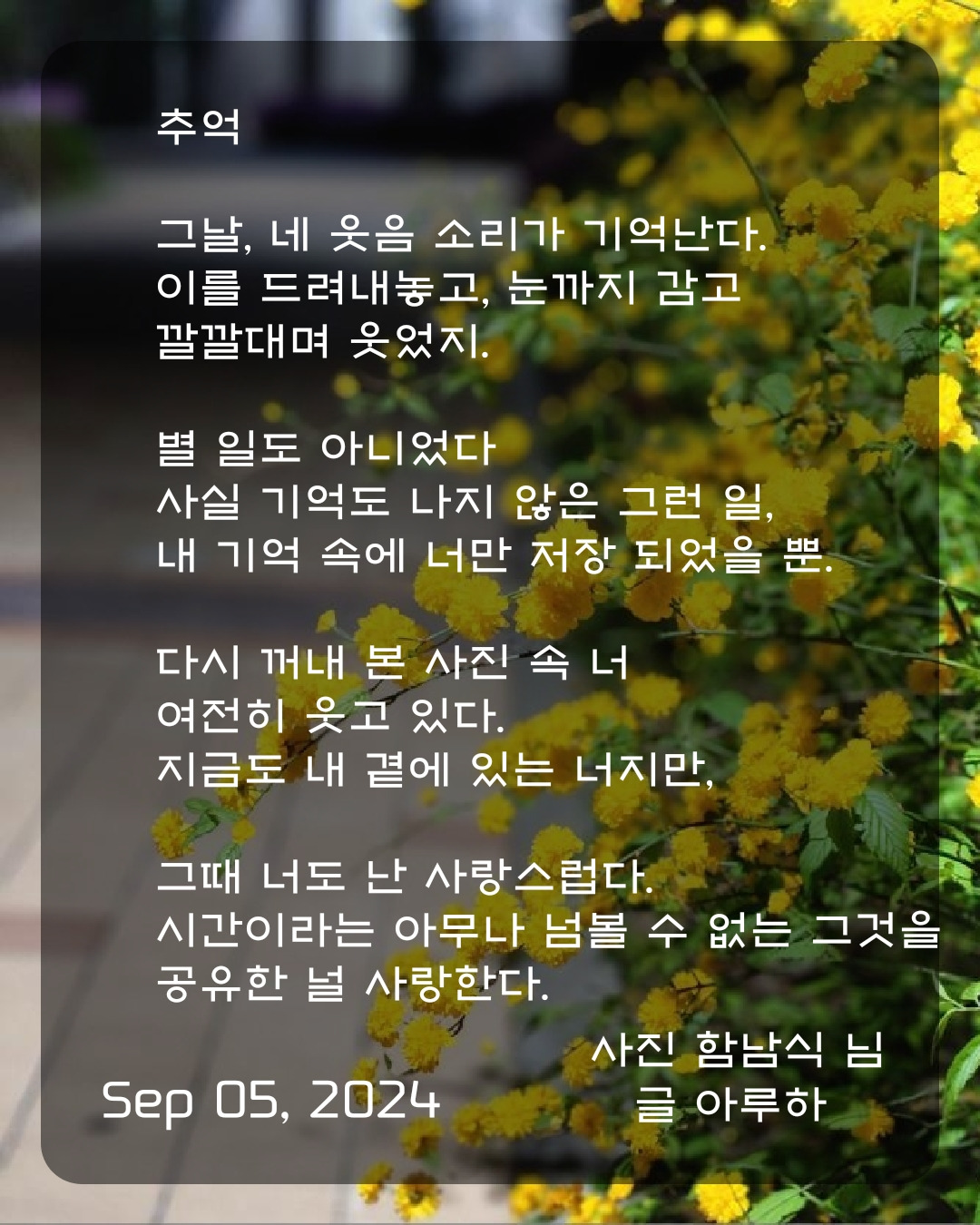 같은 시간 속에서 치열하게 하루를 사신 모든 분들, 평안한 저녁 보내시길 바랍니다.