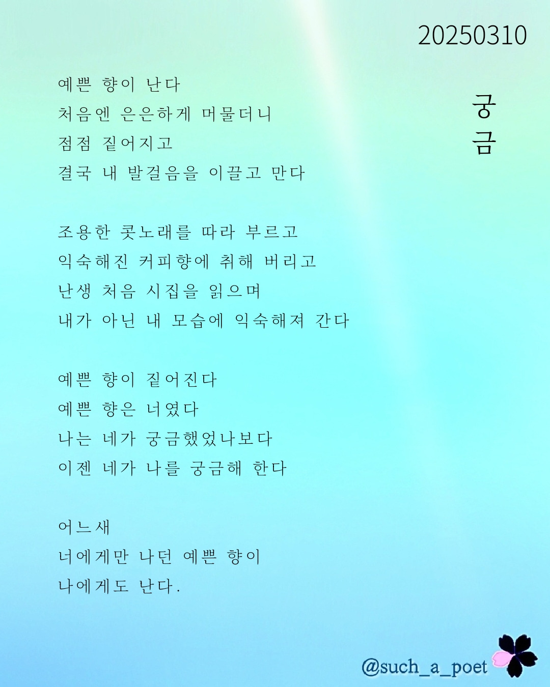 오늘의 시는 사랑의 시작에 대한 이야기입니다. 이 이야기는 제가 처음 사랑했던 사람을 생각하며 쓴 것이기도 합니다.