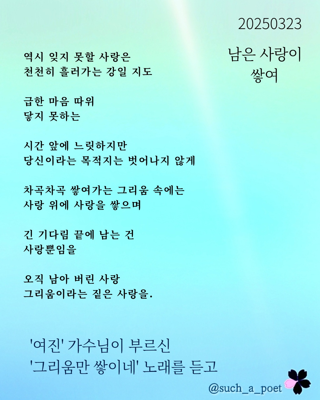 노래를 듣고 감상문을 써본 건 실로 오랜만이라 즐거웠다.