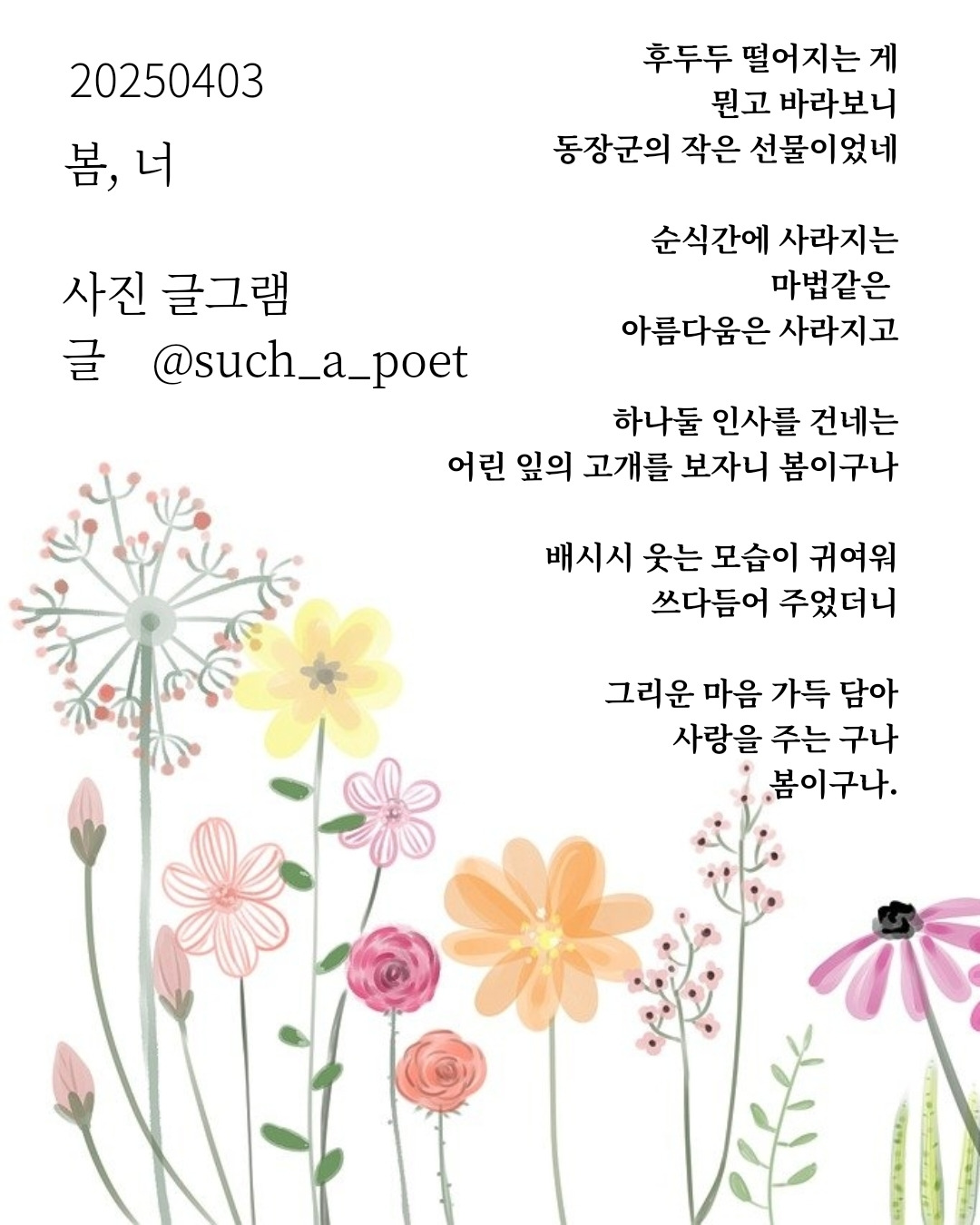 아주 잠깐 머물더라도 봄이라 좋네요.