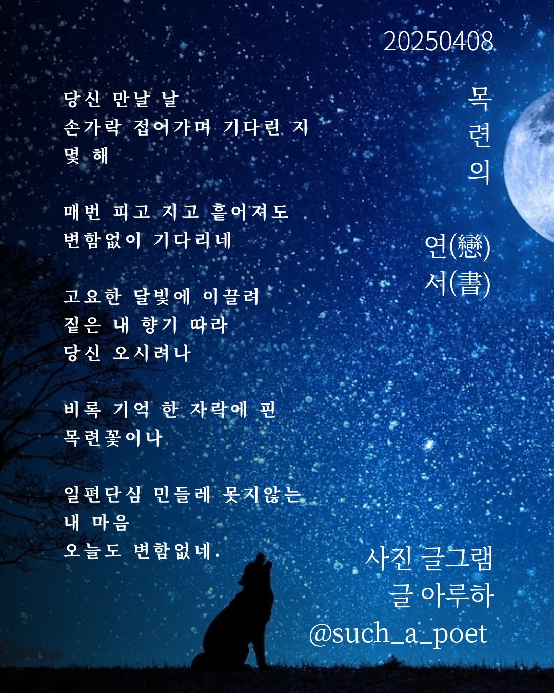 어떤 시인이 말하길 시인은 자기 시를 설명할 줄 알아야 한다고 했다. 스스로 풀어낼 수 없는 시는 좋은 글이 아니라는 것이다. 달콤함도 아픔이 담길 수 있는 게 바로 시다. 나는 순간의 생각과 감정을 주로 쓰기 때문에 사랑시라도 의미는 다르다. 나의 해석을 담아 인스타 방송을 하기도 했다. 물론 한두 명의 애청자가 전부였지만, 그래도 자기 글을 모두 설명할 수 있는 사람은 처음이라며 신기해하고, 좋아해 주셨다.
