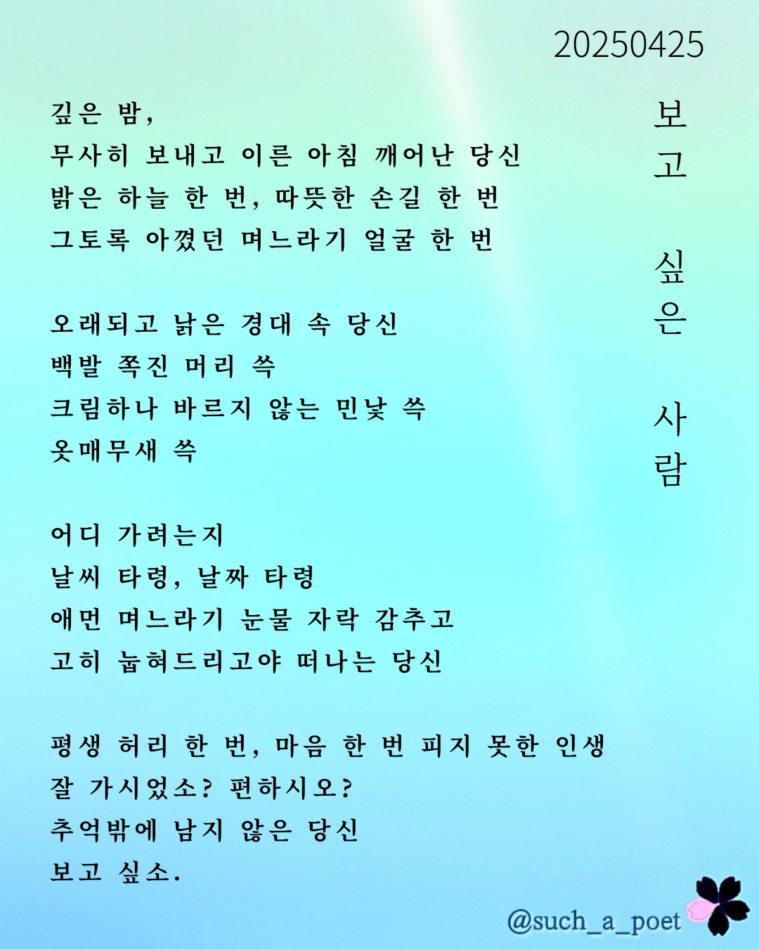 다시 볼 수 없는 사람, 할머니가 그립습니다. 바쁜 부모님을 대신해 키워주고, 재워주고, 먹여주신 분이기에 더욱 그립고 보고 싶습니다.