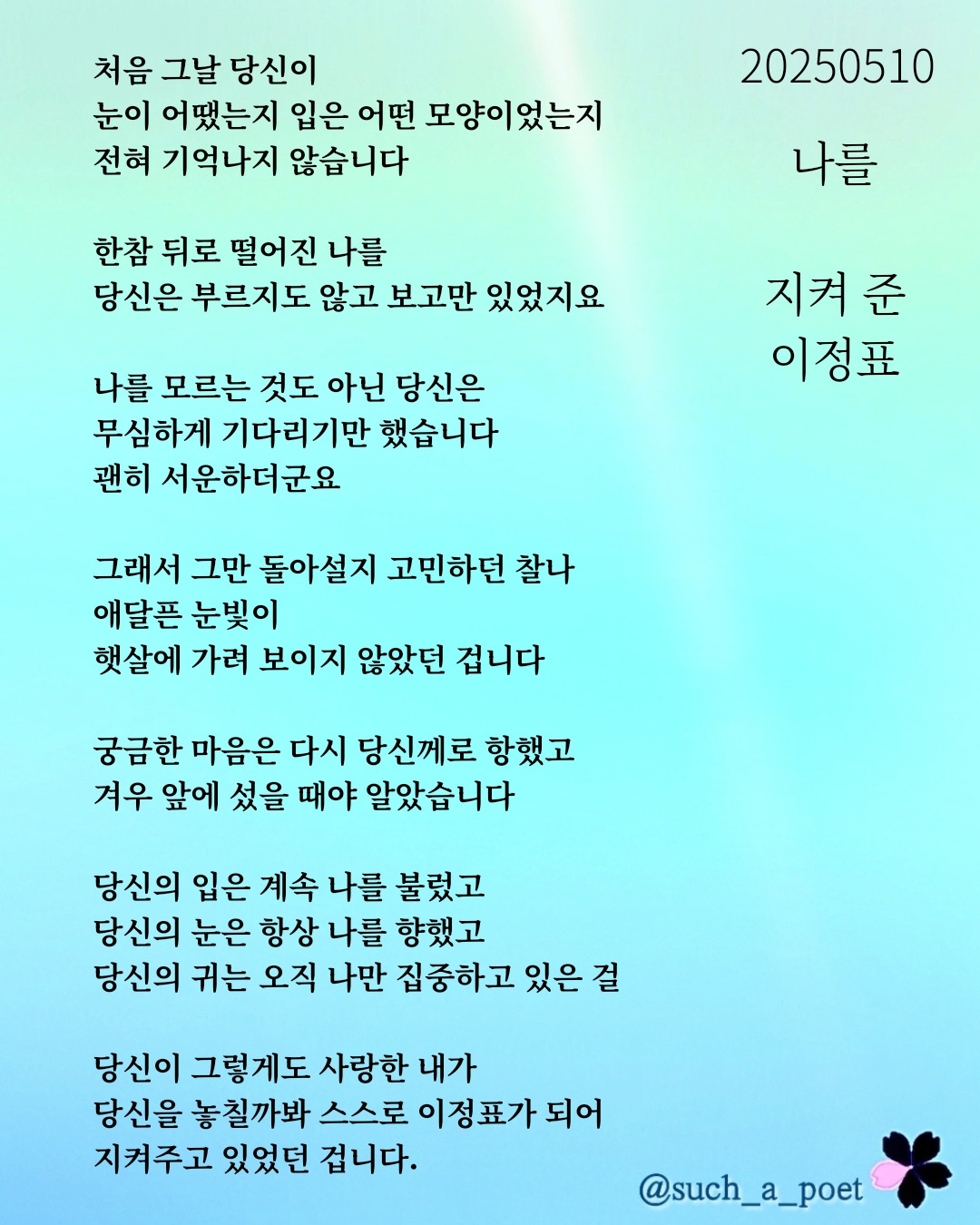 오늘의 질문을 생각해 보는 하루가 되었으면 좋겠습니다. 그게 누구든 그 사람은 부모처럼 당신을 사랑하고, 아껴주는 사람이니까 감사한 마음을 전달해 보시길 바랍니다.