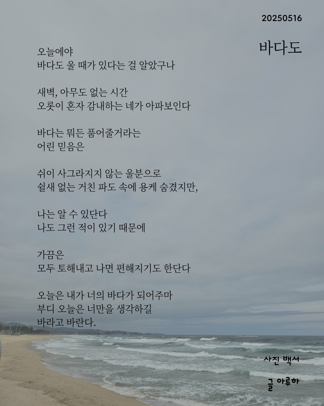 "아루하" 필명으로 활동하고 있습니다. 시, 소설, 동화, 에세이 등 다양한 장르를 쓰고 있는 아루하라고 합니다. 웹소설 작가로 데뷔 했고 현재는 일반소설을 하고 있습니다.
