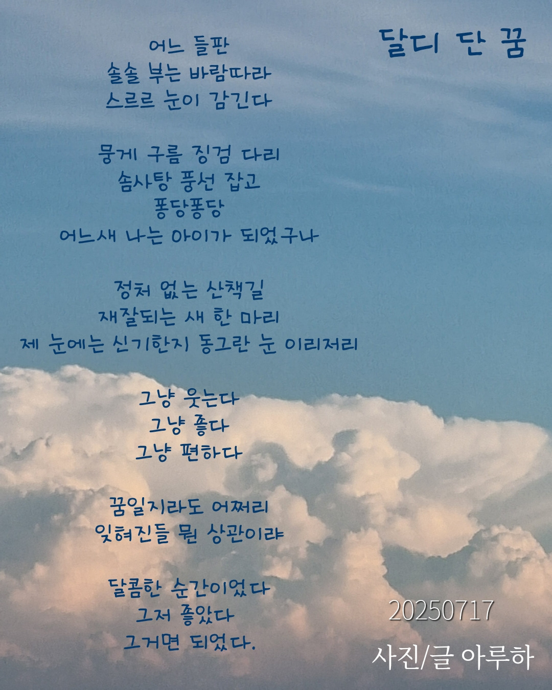 단톡방에서 매일 시제를 올려주길 원해서 시간 될 때마다 올린다. 오늘 내가 정한 시제는 '동심'이다.