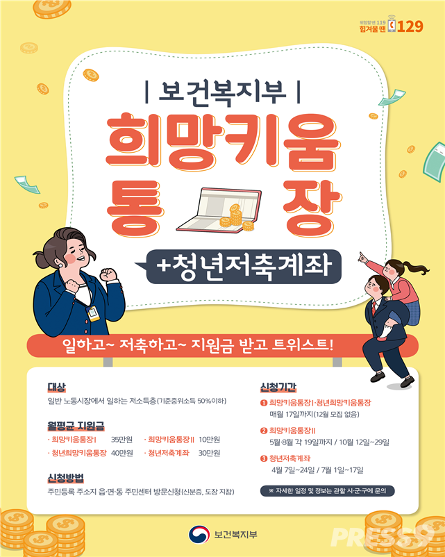 기존에 시행하고 있던 '희망키움통장'보다 정부가 생계비를 10만 원 더 지급하는 셈이다.