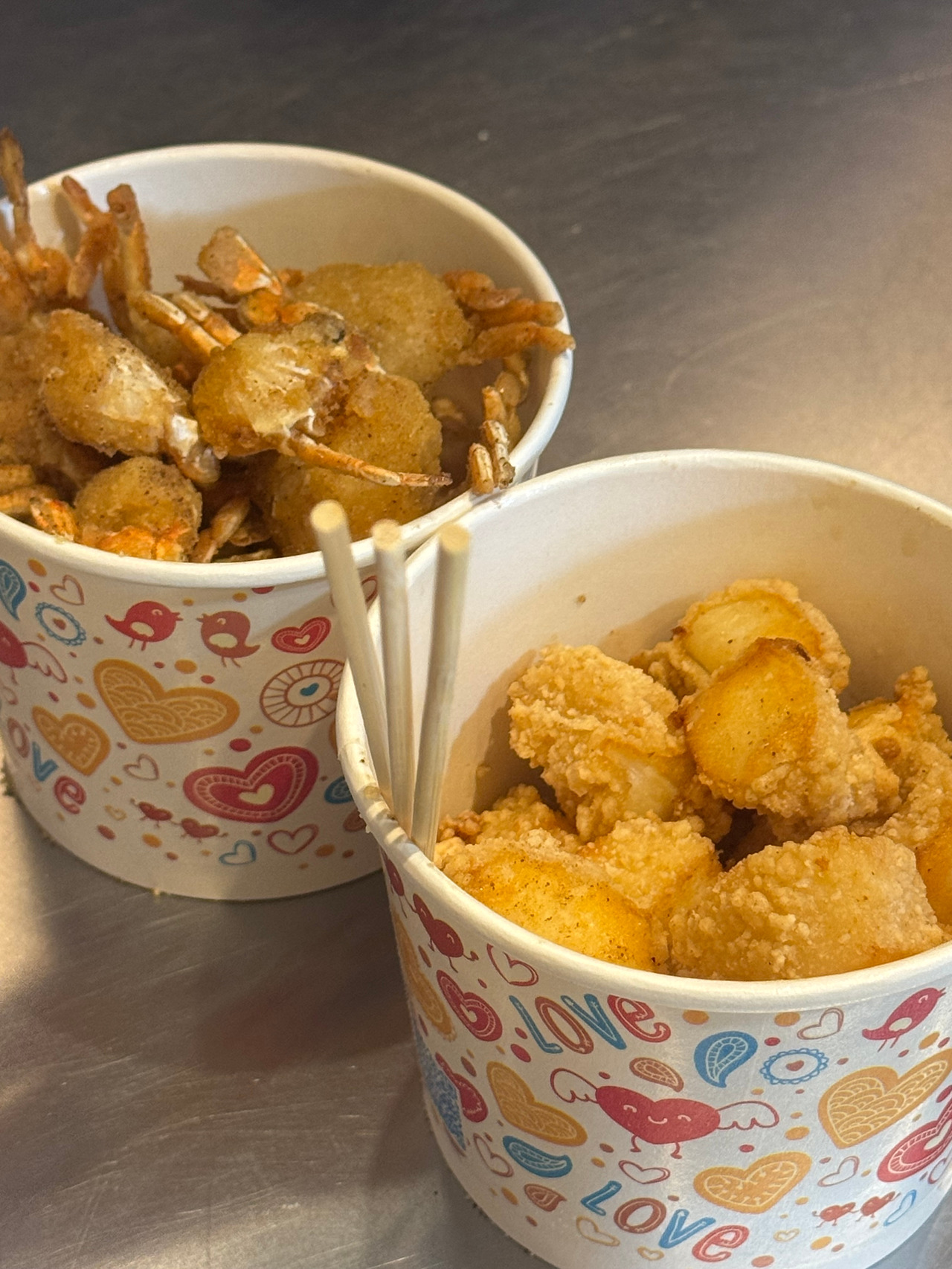 이곳에서 유명한 길거리 음식인 닭갈비 볶음밥, 땅콩 아이스크림 뿐만 아니라 소시지, 꽃게 튀김과 오징어 튀김도 먹었는데 개인적으로는 소시지와 오징어 튀김이 맛있었다.