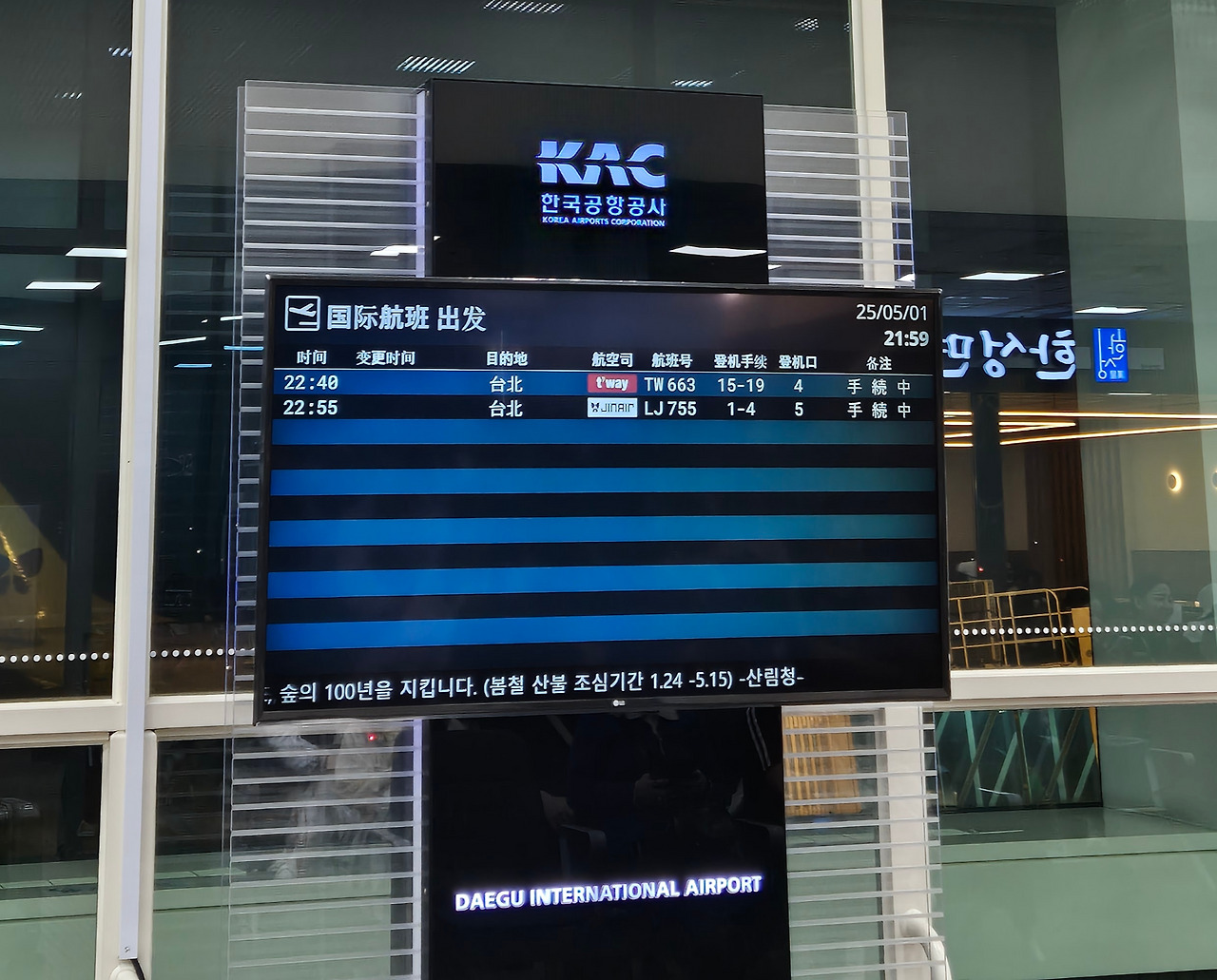 대구에서 출발하는 비행기는 늦은 밤 비행기밖에 없었기 때문에 우리 가족은 22시 55분 비행기를 타고 출발했다.