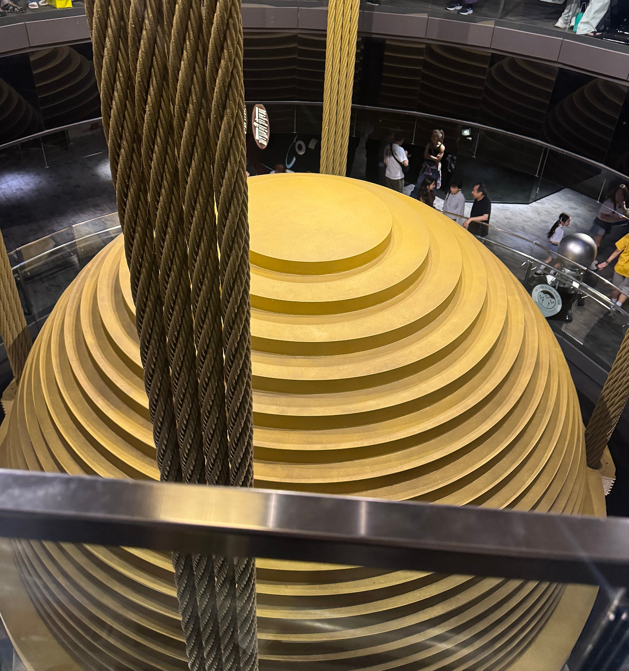 그리고 전망대 안쪽으로 들어가면 거대한 철구가 있다. 무게 약 660t, 직경 약 5.5m의 추 역할을 하는 이 철구는 지진과 강풍이 발생하면 좌우로 약 1.5m 움직여 건물 진동을 최대 40% 줄일 수 있다고 한다. 실제로 태풍이 발생했을 때의 영상을 봤는데, 위 사진의 거대한 철구가 꽤 심하게 흔들리고 있어 태풍의 위력을 실감할 수 있었다.