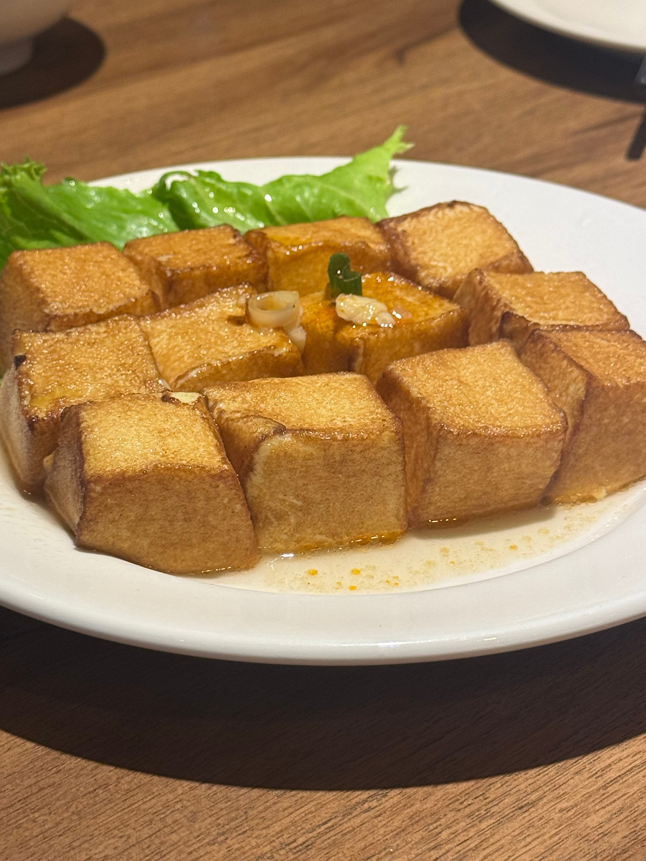 여러가지 메뉴를 시켜보았는데, 인상적인 메뉴를 몇 가지 꼽아보라고 한다면 먼저 계란 두부 튀김을 꼽고 싶다. 계란 두부 튀김은 식감이 독특했는데, 겉은 튀겨서 바삭바삭했지만 속은 계란찜처럼 부드러웠다.