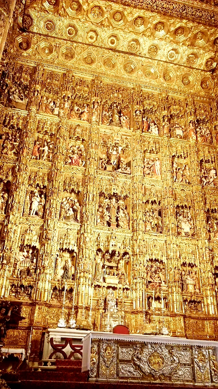 세비야 대성당의 주제단은 금과 은을 부어 만든 장식으로 둘러싸여 있다.