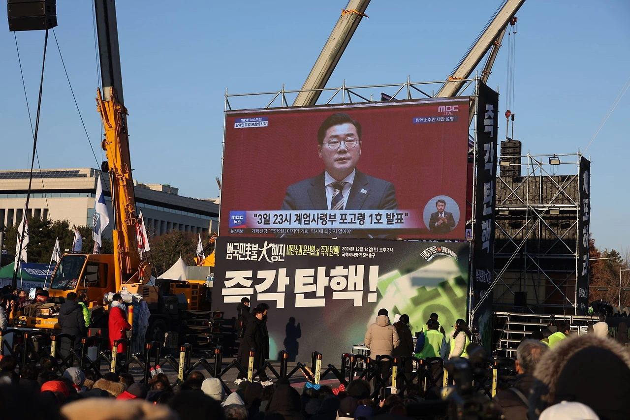 윤석열 대통령에 대한 탄핵소추안이 14일 국회 본회의를 통과했다. 국회는 이날 본회의를 열고 대통령 윤석열 탄핵소추안을 표결했다. 국회의원 300명 전원이 표결에 참여했으며, 개표 결과 찬성 204표, 반대 85표, 기권 3표, 무표 8표로 탄핵소추안이 가결됐다. 이날 가결은 1차 탄핵소추안이 투표 불성립으로 폐기된 지난 7일 이후 일주일 만에, 탄핵소추의 직접 원인이 된 지난 3일 윤 대통령의 비상계엄 선포 이후로는 11일 만이다.