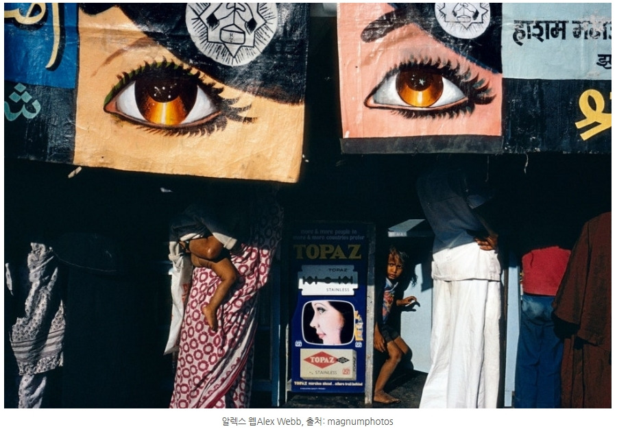 알렉스 웹(Alex Webb)의 사진들은 다소 혼란스러워 보일수도 있다. 혼돈과 무질서 속에서 주제와 부제 간의 뚜렷한 경계가 없지만, 서로가 서로를 보완하면서 이미지를 구성하고 있다. <The Suffering of Light>, <Dislocations>의 사진집을 통해서 그의 주된 관심은 빛이 만들어낸 컬러와, 다소 혼돈과 무질서한 객체들의 구성들이다. 그는 사진 속에 있는 사람들이 움직여 지나가는 시간의 흔적과 변화의 대상 속에서, 여전히 남아 있는 빛을 탐구한다. 도시의 소음과 혼란스러움은 어두컴컴하고 우울한 톤의 재즈와 닮았다.