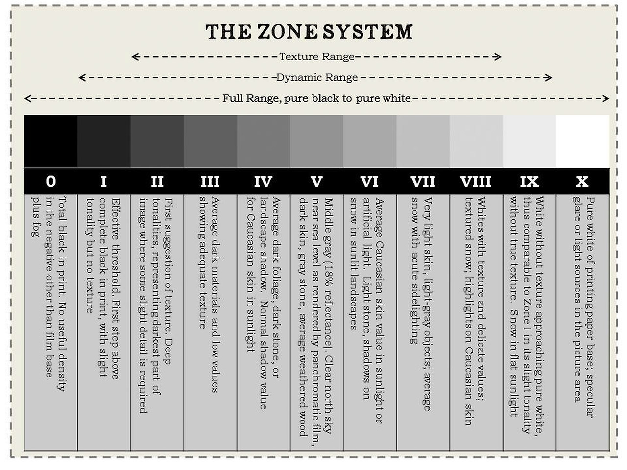안셀 애덤스(Ansel Adams)는 풍경사진가로 유명하다. 요세미티 국립공원내에 그의 갤러리가 있다. F64그룹을 만들었고, 그의 사진작업 중에서 <Moonrise, Hernandez, New Mexico>(1941)는 자연의 빛과 색조의 농담을 흑백의 미묘함에서 탁월하게 재현해낸다. 우연히 찍힌 이 사진은 뉴멕시코의 작은 마을 위로 떠오르는 달과 눈 덮인 산맥, 교회 십자가가 어우러져 있다. 사진가가 이러한 것들을 수행하기 위해 미리 정확하게 예측하고 결정하는 “존 시스템(zone system)’을 개발했다. 존 시스템은 촬영과 암실 작업을 통해서 흑백의 단계를 11단계로 나눈다. 존시스템(zone system)은 사진을 만듦에 있어 존스케일(zone scale)을 카메라조작(조리개, 셔터스피드)과 현상, 인화에 걸쳐서 조절하여 사진에서 원하는대로 밝기나 명암비등을 표현할수 있게끔 정립화한 방식이다. 그는 자연의 아름다움과 그 보존을 삶의 중심에 두었고, 기술적 완벽함으로 인간과 자연의 조화를 기록했다.