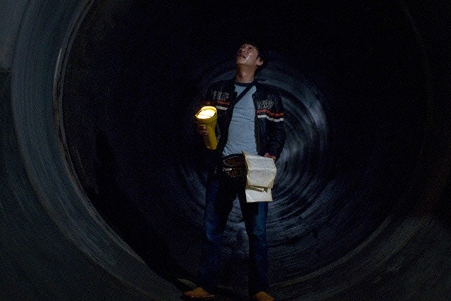 “관 끝에 널빤지로 된 수문이 있어. 뭐, 평소에는 수압을 이용해 맞은편으로 열리도록 하는 구조인데, 그 왜 인조 돌이라고, 위장을 해 놓은 거야. 경관을 해치지 않으려고 말이야. 그놈을 밀고 나와, 강도 얕으니까 걸어서 맞은편 기슭까지 가면 자동차학원 쪽으로 나갈 수 있어.”