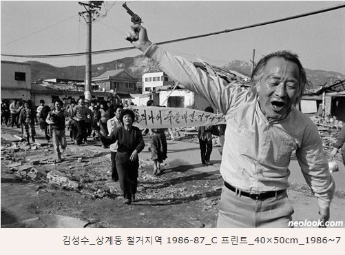 이 책에서 보면 공동주택은 우리의 판자촌이나 재개발지역의 모습을 기억하게 만든다. 내 기억에는 서울은 현재까지도 재개발, 또는 재건축이라는 이름으로 도시는 재생산되고 있다. 봉천동이나 난곡동의 모습은 사라진지 오래지만, 그곳에 살던 ‘나머지 절반’들은 어디서 어떻게 살고 있을까? 130년전 뉴욕의 공동주택은 낙후되고 음습하였다. 이 책은 화려한 뉴욕이 아니라 화려함속에 가려진 뉴욕의 하층민의 어두운 모습을 보여준다. 우리나라도 86아시안게임과 88올림픽을 거치면서 도시미관 사업의 일환으로 대규모 재개발이 있었다. 그 이전 1972년 박정희 정부의 ‘주택건설촉진법’에 의해 마련된 국민주택 정책의 일환이자 4~5인 기준에 맞춰진 ‘가장 보편적이고 표준적인 면적기준’으로, 이후 40년이 지난 현재에도 한국의 보급형 공동주택과 주거문화는 계속 변화하고 있다. 1980년대 초반까지 상수도 시설도 없는 최고로 열악한 빈민촌이었던 상계동지역은 88올림픽으로 인해 이 지역은 재개발지역이 되었다. 86년 10월부터 88년 서울올림픽 직전까지 상계동은 올림픽 성화가 지나가는 길 근처는 미관상 좋지 않기에 ‘환경 미화’의 차원에서 철거되게 되었고, 이를 기록한 독립영화는 김동원 감독의 ‘상계동 올림픽’이란 작품이 있다. 이 작업에는 사진작업으로 사진집단 현장의 창립멤버인 김성수 선배의 사진도 함께 하였다. 김성수 선배의 상계동 사진작업은 현재 서울시립북서울미술관에서 ‘2017 서울 포커스 [25.7] 전시회’에서 다시 볼수 있다. 30년전의 김성수선배의 작업은 현 후배 작가들이 바라본 상계동의 사진들과 함께하고 있다. 이 전시는 상계 신시가지의 준공 30주년을 기념하여 기획되었고, 30년이라는 세월의 무게를 느낄수 있다. 88년 올림픽의 미관사업으로 이루어진 도시 재개발 아파트 사업은 30년이 된 노후화된 아파트의 재건축으로 이어진다. 이 전시의 제목이기도 한 [25.7]은 공동주택에서 세대의 소유자가 독점으로 사용하는 전용면적 85m㎡를 의미한다. 재개발로 쫓겨난 철거민들은 사실 분양권을 가질수 없는 경제적 조건들, 그리고 아파트를 투기대상으로 생각하는 가진자들은 더 많이 가질려고 하는 자본주의사회속에서, 주택을 가지고 싶어하는 서민들은 내집마련이라는 꿈을 가지며 열심히 일하고 있지만 현실은 어렵기만 하다. 과연 [25.7]평은 우리 삶에서 어떤 의미일까?