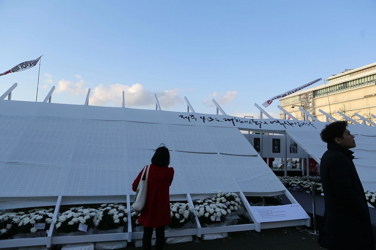 사진은 시간과 공간이 한 프레임에 응축적으로 담겨져 있다. 이 두 요소는 사실상 프레임안에서 병치또는 얼기설기 몽타쥬되어 있다. 영화는 그 흐름에 따라서 시간이라는 요소를 잘 풀어낼수 있지만, 한 장의 사진에서는 어쩌면 이질적인 두 요소가 섞여있기도 하다. 우리는 공간을 보면서 기억을 떠올린다. 그 공간이 가졌던 좋은 추억일수도 있고, 슬픈 기억일수도 있다. 안산, 팽목항이라는 공간, 강정마을, 밀양 그 공간은 시간에 의한 기억을 받게 된다. 공간에 서면 감정과 이성은 상호 병치되고 있을지 모르겠다.