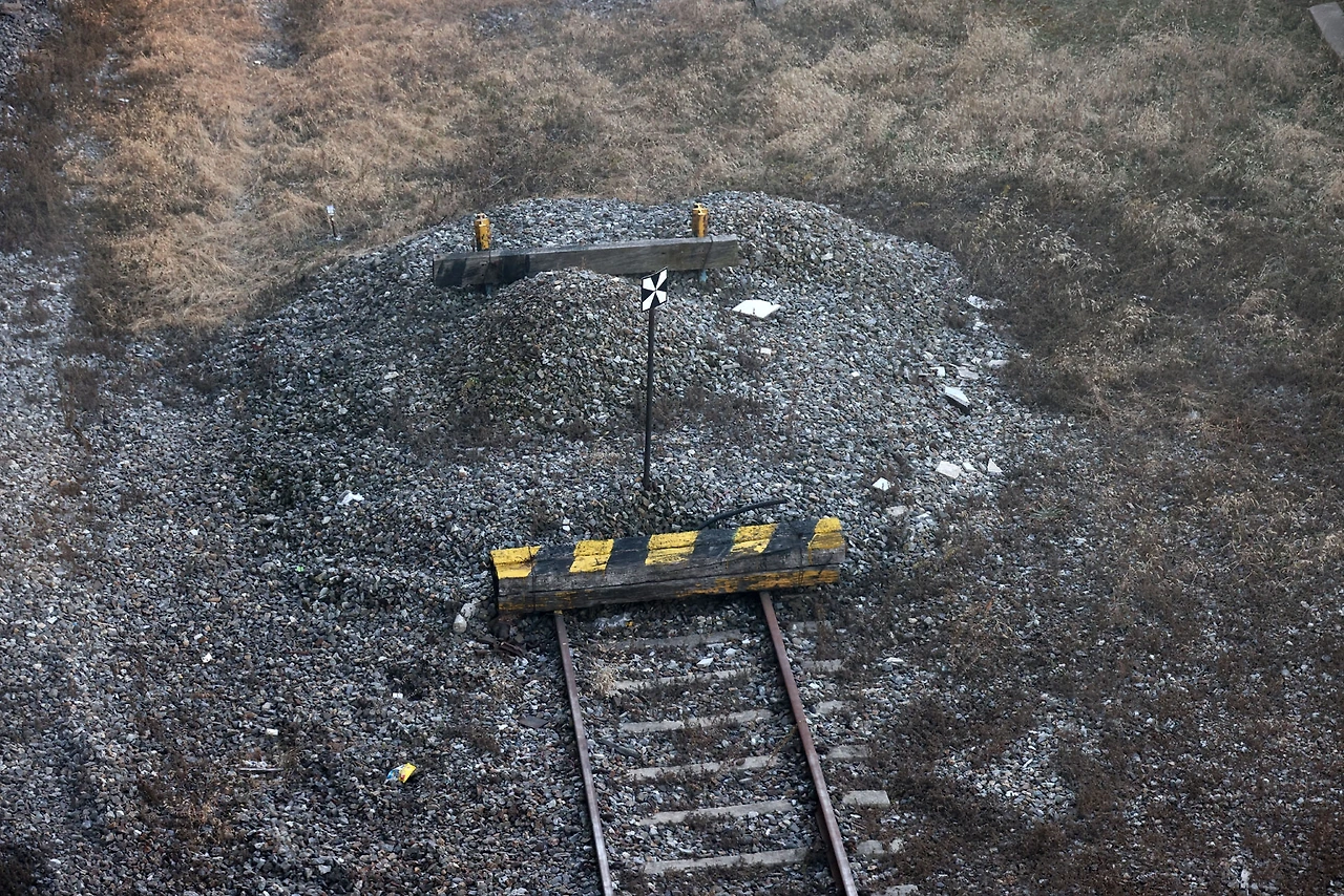 용산역에서 아이파크몰로 가는 구름다리 위에서, 한창 공사중이다. 철도가 마지막 선로에 무덤처럼 보인다.
