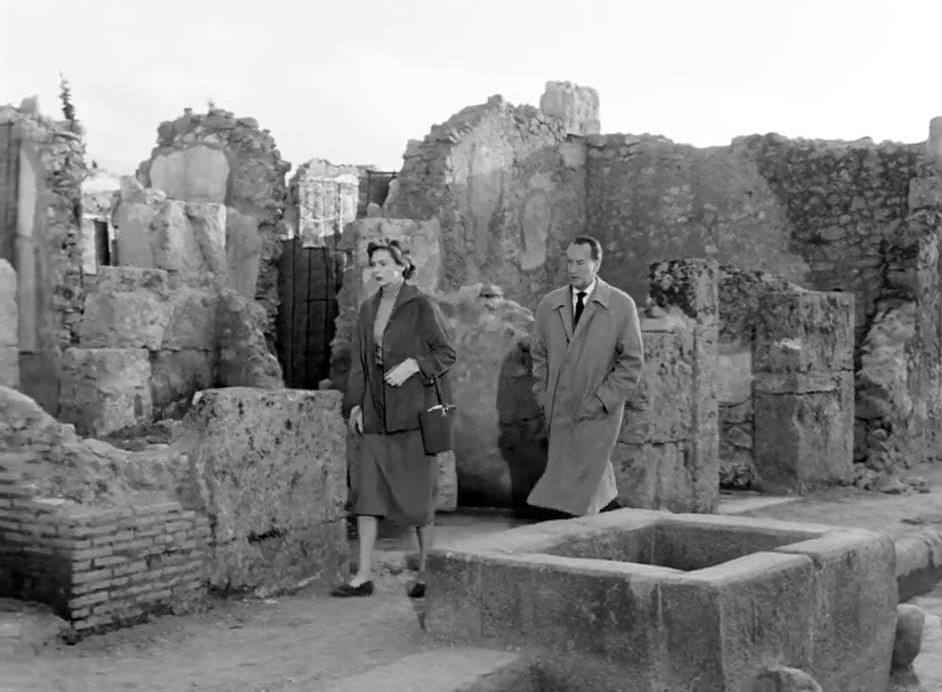 영화 <이탈리아 여행(Journey to Italy)>는 로베르토 로셀리니 감독, 잉그리드 버그만, 조지 산더스 주연의 영화이다. 이 영화는 전통적인 서사 구조를 깨뜨린 현대 영화의 출발점으로 평가받는 작품이다. 나폴리의 웅장한 유적과 조각상들이 주인공의 내면을 잘 보여주고 있다. 실제 부부였던 두사람의 묘한 긴장감이 영화 속에 투영되었고, 여행이라는 설정이 어떻게 인간의 내면을 흔들어 놓는지 보여준다. 소설과는 제목만 같다.