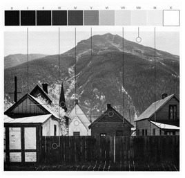 빛으로 만들어진 명암은 "대비(comparison)와 대조(contrast)를 통한" 시각적 효과들로 하여금 감상자를 주목시키고 상상력을 일으키게 된다. 이러한 상상력은 감상자에게 은유(metaphor)와 상징(symbol)의 전달을 꾀하게 된다. 명암의 단계적 표현을 가능케 한 존시스템 프린트기술을 창안한 안셀 아담스(Anael Adams)의 풍경 흑백사진은 대상 물체의 모든 색깔을 용해하고 여과하여, 오직 그의 이미지만을 명암의 톤으로 형상화하므로, 이미지의 심도가 깊고 표현이 은유적이라고 할 수 있다. 마치 수묵화와 같은 은은한 깊이를 지니고 있다. 피사체, 조명, 색조, 선명도, 치밀한 느낌등은 마치 베토벤의 교향곡처럼 그의 사진에서 조화를 이룬다.