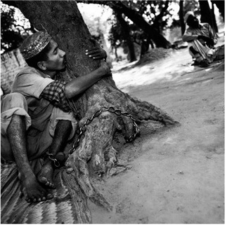 1989년 인도에서 촬영한 이 사진은 나무를 껴안고 있는 남자의 모습뿐만 아니라 뒤의 초점이 흐린 인물의 모습까지 담아내고 있다. 사진가는 의도적으로 기울이면서 뒤의 인물까지도 프레임안에 담아내면서 둘의 관계까지도 암시하고 있다. 프레임은 선택적인 수단이며, 공간을 고립시키는 것이 아니라 확장의 수단으로서 사용되고 있는 것이다. 그녀는 촬영을 할 때, “어떻게 찍으면 이 프레임 안의 이미지가 최상의 그림이 될지 생각한다. 어떻게 찍으면 가장 강렬한 이미지를 만들어낼지 고민한다.”고 말한다. 사진가는 자신의 프레임을 통해서 자신의 생각을 드러낸다. 그리고 그녀는 “사진으로 세상을 변화시킬수 있다고 기대하지 않는다. 나는 사진으로 삶의 의미와 비중을 드러내고 싶다. 많은 사람들이 내용 있는 이미지를 잡지에서 보길 원한다. 요즘은 그런 사진이 드물다. 나는 사람들의 마음을 움직이는 사진을 찍고 싶다. 사진이 사회를 바꿀 수 있다? 잘 모르겠다. 실제로 사회 변화를 몰고 온 사진은 몇 장 안된다”고 말하면서, 유명한 사진가들의 작업을 보면서 그 위대한 이유가 무엇인지를 이해라고 조언한다.
