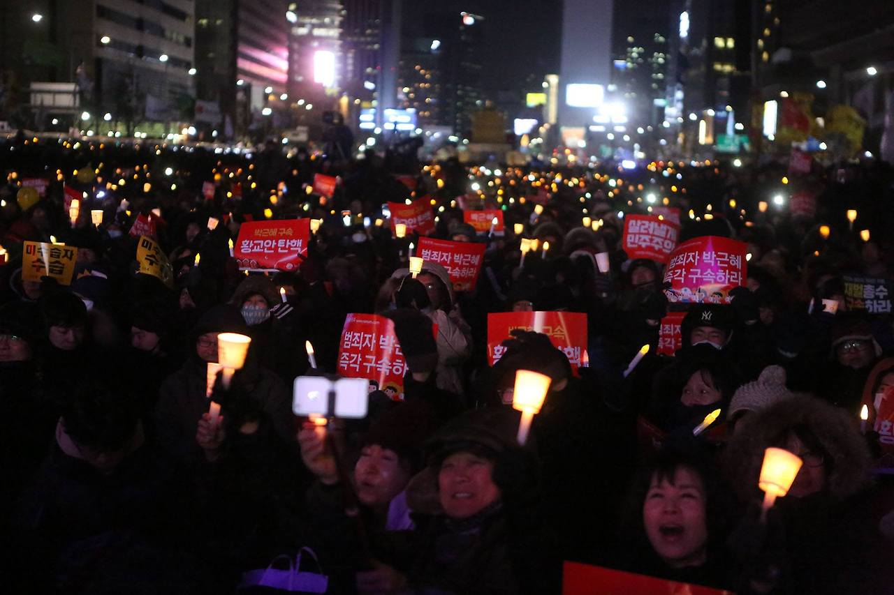 2017년 1월 14일, 체감온도 영하 13도에도 불구하고 12차 촛불집회가 열였다. 이날은 1987년 남영동 대공분실에서 고문을 받던 중 사망한 서울대 학생 박종철 열사의 30주기였다. 광장에는 박종철 열사를 추모하는 시민들이 국화꽃을 들고 줄을 섰으며, 정원스님 분향소에도 시민들의 조문행렬이 이어졌다. 광화문미술행동에서 준비한 차벽공략 프로젝트 ‘응답하라 1987! 한 걸음 더 2017’는 현수막을 설치해 ‘박종철, 이한열 열사 30주기 추모시민 퍼포먼스’를 진행했다. 이날은 주최측 추산 14만6천7백명이 참가하였다.