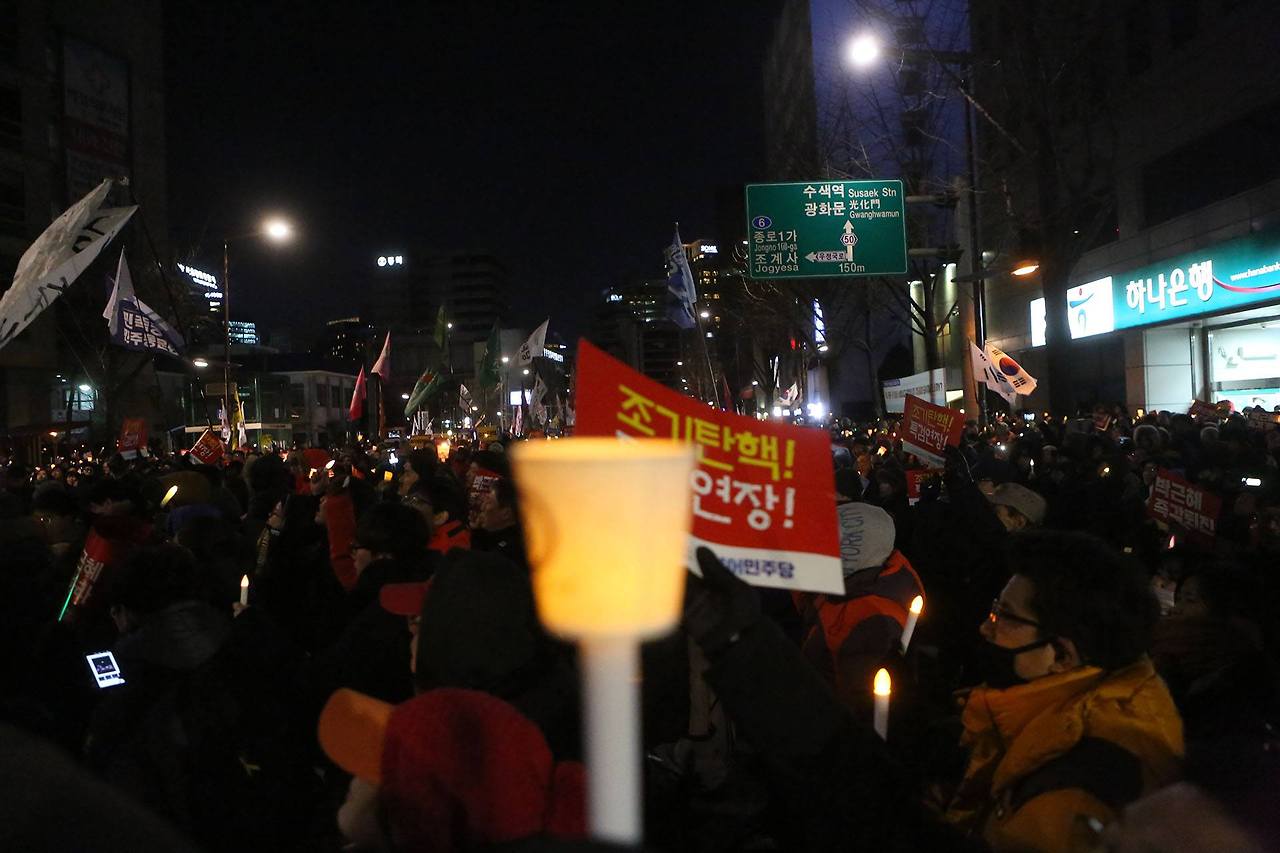 2017년 2월 11일에 15차 촛불집회가 열였다. '박근혜정권 퇴진 비상국민행동'(퇴진행동)은 이날 집회에 전국 80만6천명이 집결했다고 추산했다. 이날 퇴진행동은 시민들과 함께 박근혜 대통령의 퇴진과 헌법재판소의 조속한 탄핵 인용을 촉구했다. 김경자 민주노총 부위원장은 "박근혜 대통령과 그를 비호하는 범죄집단은 특검 수사가 끝나고 이정미 헌법재판관 임기가 끝날 때까지만 버티면 된다는 기대감을 갖는다"며 "더 긴장하고 촛불을 더 높이 들어야 한다"고 목소리를 높였다.