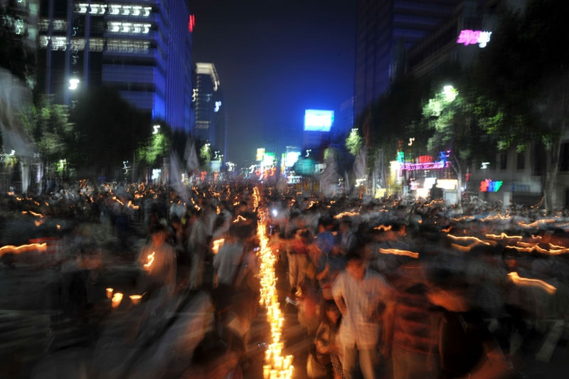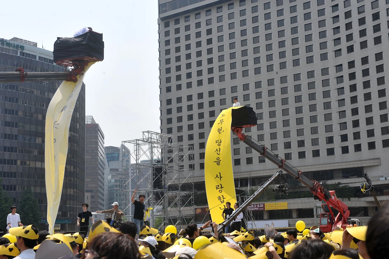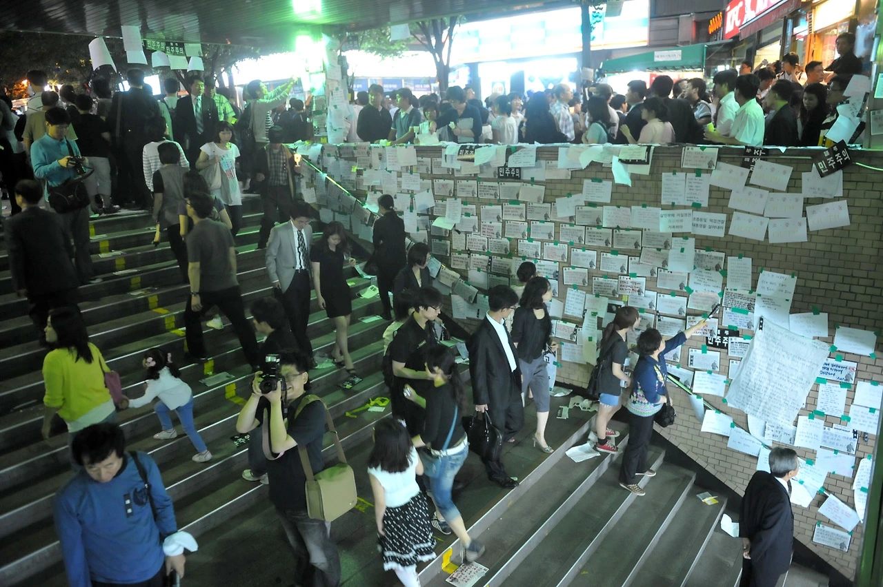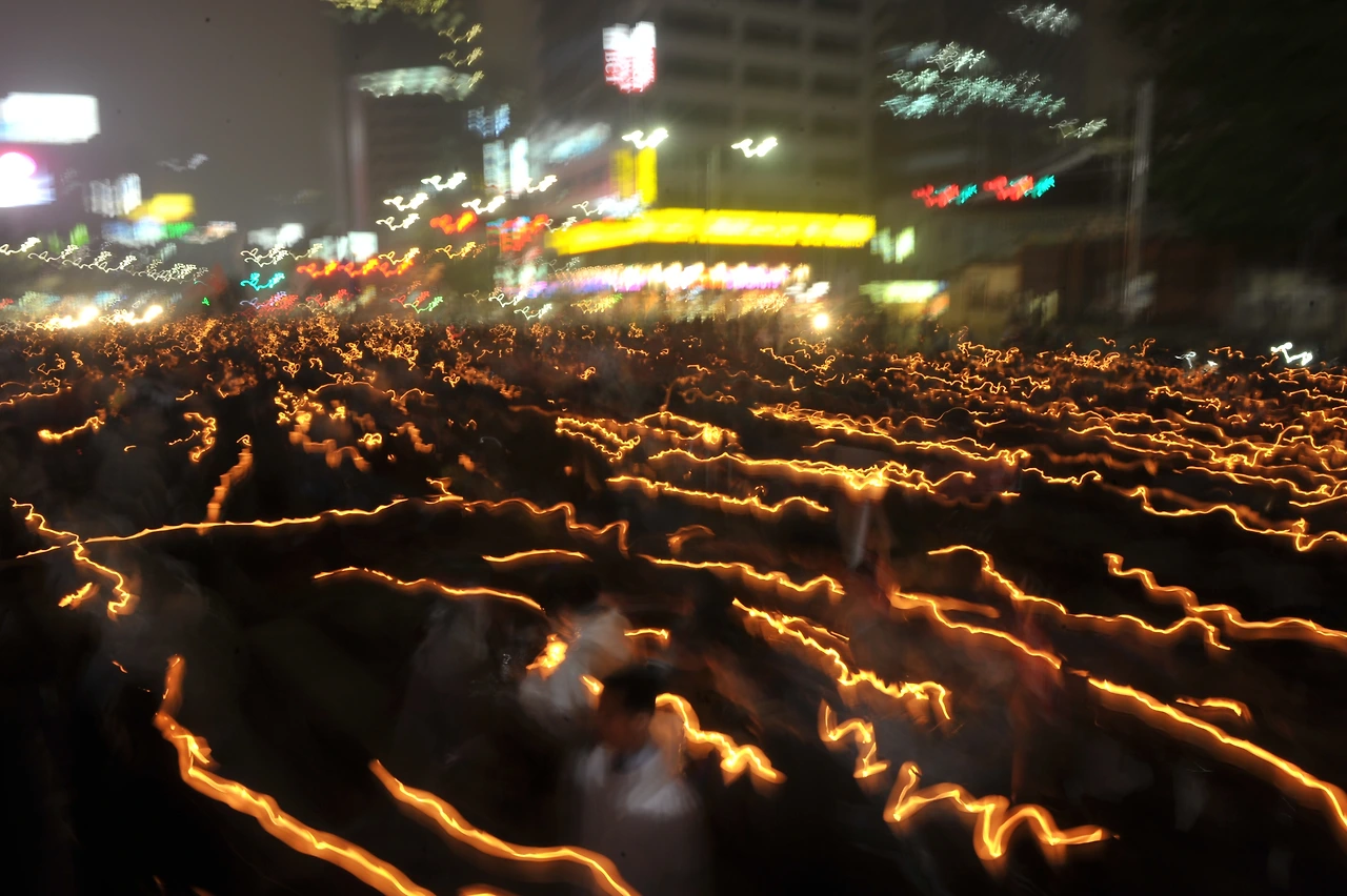 2008년 4월29일 <PD수첩>의 보도는 한미 쇠고기 협상 내용에 대한 국민들의 여론을 들끓게 하는 기폭제가 되었고 다음달 5월2일, 이명박 정부의 미국산 쇠고기 수입협상에 대한 반대의사를 표시하기 위해 촛불집회가 처음 열렸다. 먹거리에 대한 시민들의 분노는 대단했었다. 남녀노소 각자의 피켓을 들고, 다양한 구호도 많이 보여졌다. 직장인이었던 나는 청계광장에 모인 집회에 기록을 하게 된 것이 1년간 집회 사진을 기록하게 되었다. 매주 열리던 집회는 광화문사거리를 넘지 못했다. 차벽으로 온통 막아놨기 때문에 시민들의 집회는 청계광장, 시청광장에서 열렸고, 집회가 끝나면 을지로, 서대문으로 행진을 이어갔다. 그러나 광화문을 넘어 청와대로의 길은 막혀 있었다. 버스는 우회했고, 당시 부암동에 살았기 때문에 집을 가지 못하고 시위대의 행진을 찍고 집에 들어가면 12시를 넘곤 했다.
