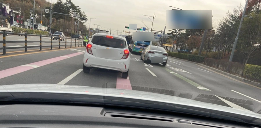 그런데 저 '후면 단속 카메라'의 존재가 생기고부터는 아주 신세계를 경험하고 있어요. 카메라를 만나기 전부터 속도를 줄이기 시작하다가 카메라를 등지고는 정말 엉금엉금 다들 조심하는 게 느껴져요. 어느 선에서 이 감시가 끝날지 확신할 수 없기도 하고요