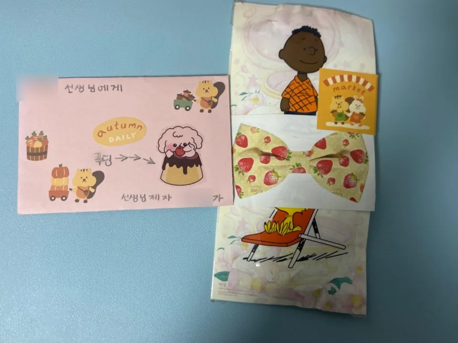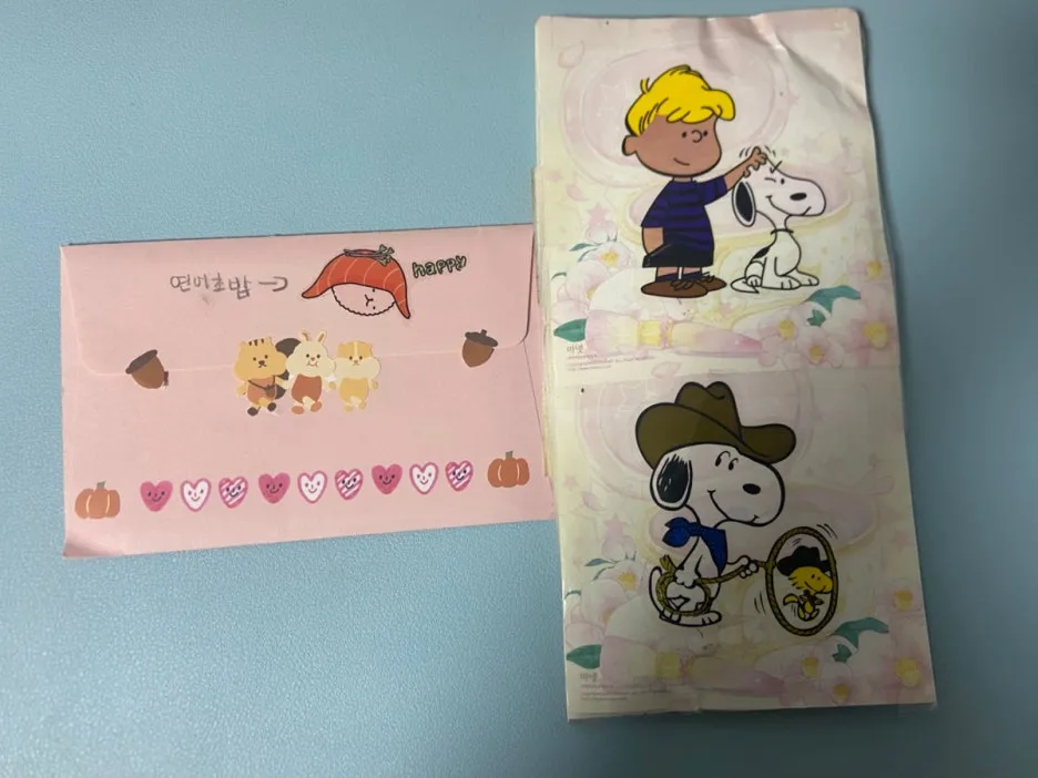 이 정성 어쩌니... 편지 봉투 안에는 형광펜 두 자루가 들어 있었네. 아까워서 저걸 어떻게 쓰니?