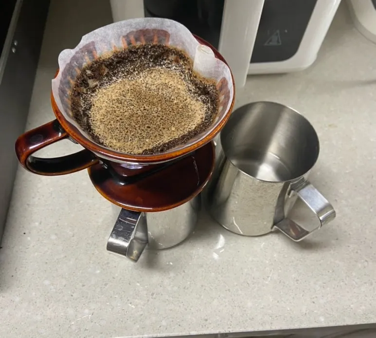 주인공들의 고요한 의식을 지켜보는 존재를 잊고 있었다. 종이 필터를 드리퍼 위에 올려주는, 드립포트에 물을 담아 주는, 커피를 종이 필터와 만나게 해 주는 존재. 엑스트라가 있었다. 주인공들의 빛에 가려져 있었다. 자세히 보니 엑스트라의 특이한 행동이 하나 눈에 띈다.