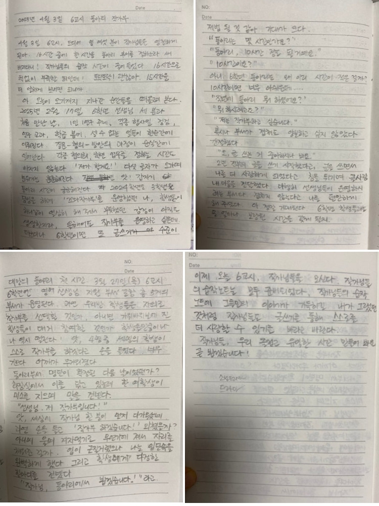 이제 오늘 6교시 작가님들을 모신다. 작가님들의 습작노트는 모두 준비되었다. 습작 노트에 그들만의 이야기가 가득하길, 내가 그랬던 것처럼 글쓰기를 통해 스스로를 더 사랑할 수 있기를.
