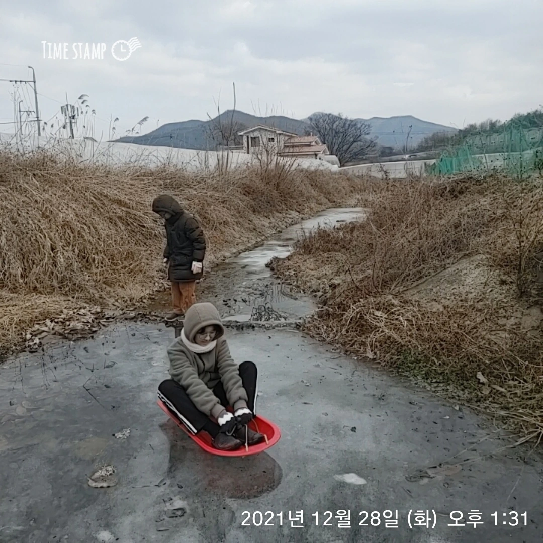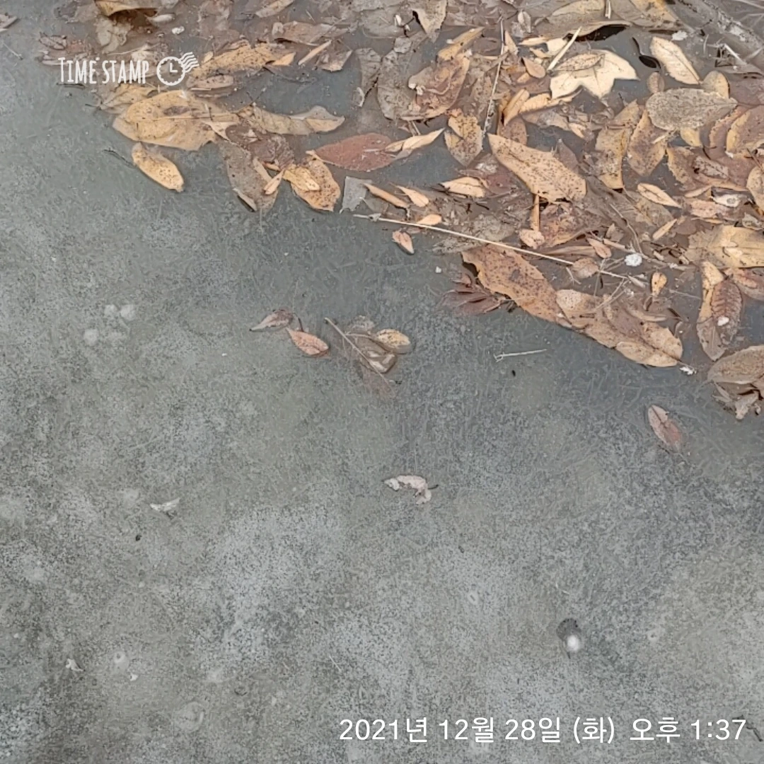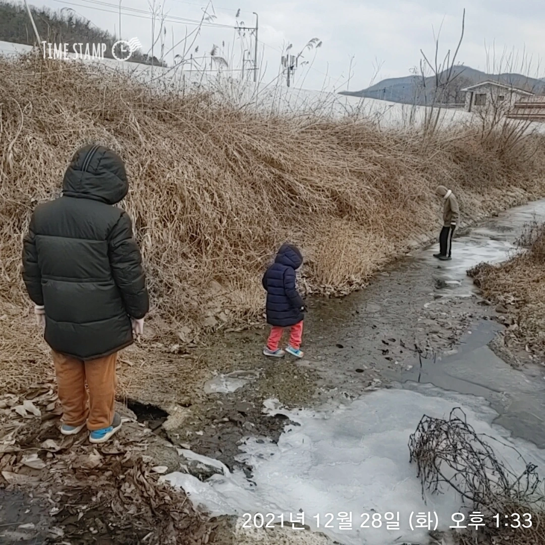 개울이 얼었다.