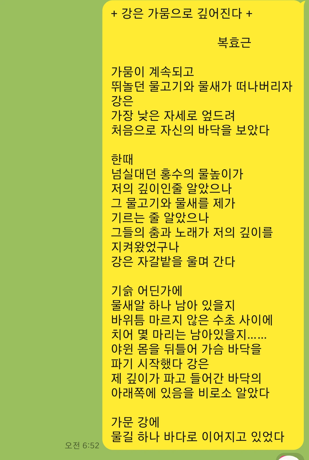 '복효근'님의 '강은 가뭄으로 깊어진다'는 시로 우수를 열었다. 마지막 구절 '가문 강에 물길 하나 바다로 이어지고 있었다.'를 소리 내어 읽어보니, 끝내 접지 않은 희망처럼 읽힌다. 말라가는 개울을 동동거리는 마음으로만 바라보지 말고, 어떻게든 이어가려는 물길에 눈길을 주어야겠다.