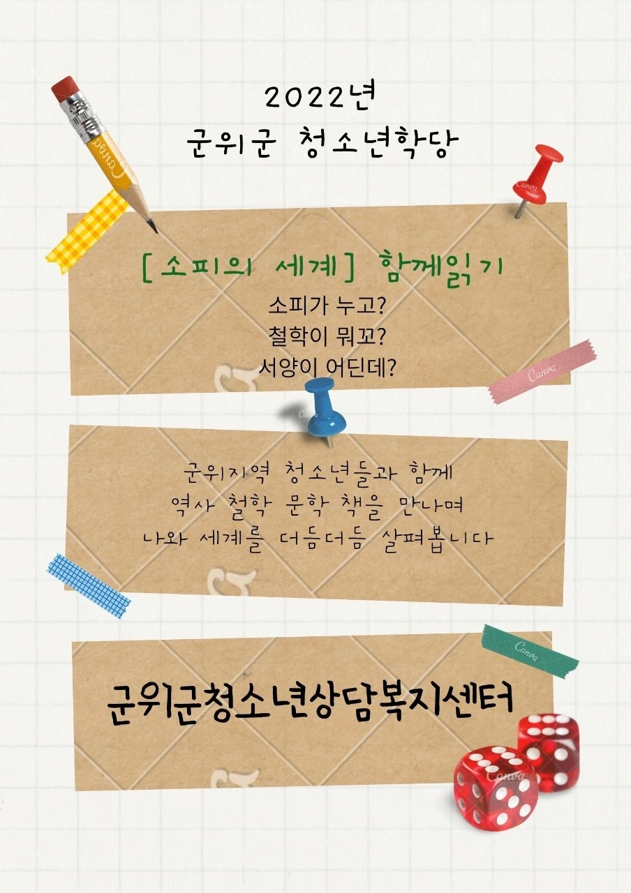 군위군청소년상담복지센터에서 새로운 방식으로 청소년 동아리를 운영하고자 한다는 소식을 듣고, 내가 '청소년 인문학 공부모임이 있으면 어떨까?'하고 제안을 드리고 내가 자원활동이 가능하다고 목소리를 냈다.
