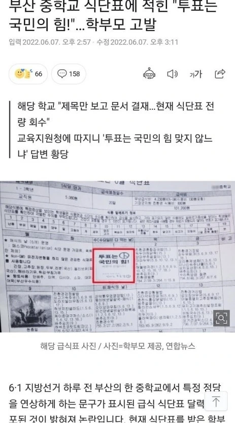 지난 6월 지방선거 선거운동 기간 동안 군위지역 거소투표 부정 의혹이 뉴스로 나왔던 것을 청소년 학당 모임에 가져와 보았다. 선거가 있었던 주의 주말이라 군위지역의 선거 열기가 채 가라앉지 않았던 시점이었다. 그 열기가 청소년들에게도 가 닿고 있는지 궁금했다. 부산지역에서 있었던 식단표 논란으로 질문을 던지자, 청소년들의 눈빛에 생기가 도는 것이 바로 느껴졌다. 식단표의 힘이었을까?
