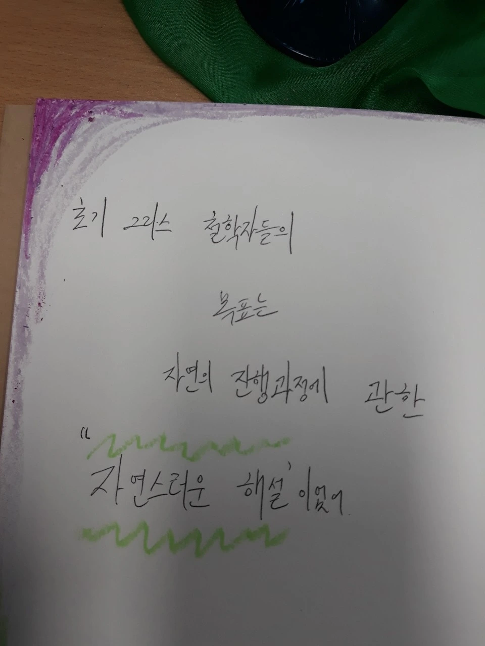 이 날도 '소피의 세계' 일부를 함께 읽고 그중에 와닿는 문장을 공책에 옮겨 적었다.