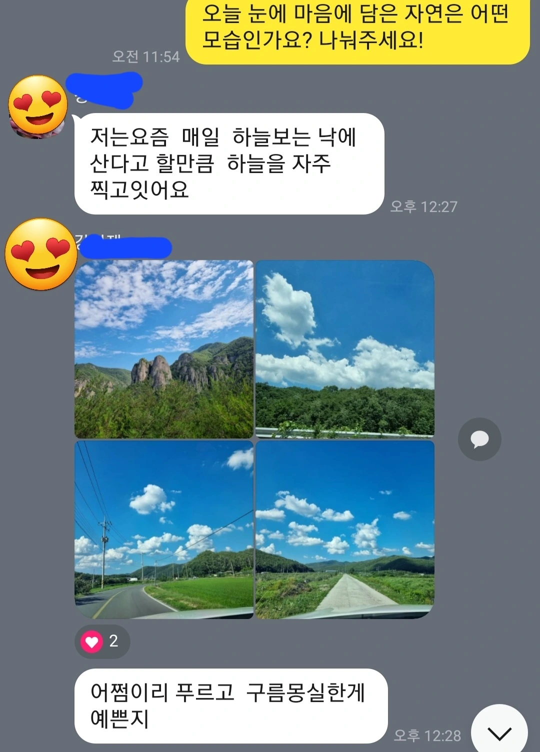 하늘과 벌레 짐승의 흔적들을 마주하는 것을 나누었다.