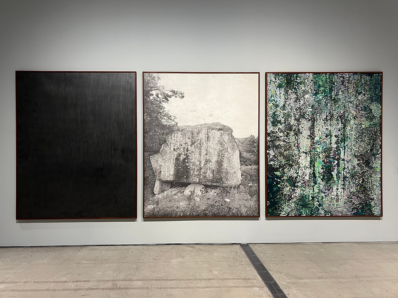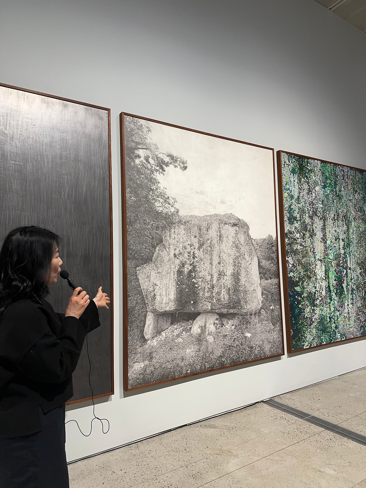 세 점의 드로잉이다. 첫 번째는 고인돌에 묻힌 사람의 시선에서, 두 번째는 인간의 관점, 제도권 안에서 제의적 기능은 제거되고 역사적 유적으로서 존재하는 고인돌이다 세 번째는 무엇일까? 인간과 역사를 벗어난 자연, 즉 고인돌의 관점이다. 고인돌의 표면에 생긴 이끼를 그렸다. 이 이끼들은 자연물인가? 아니면 이 역시 고인돌의 일부로서 유산인가?